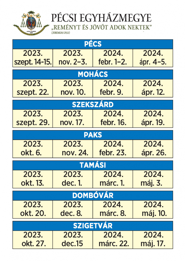 Az oldalon közzétett fotók és a szöveg részben vagy egészben történő felhasználása kizárólag forrásmegjelöléssel vagy a Pécsi Egyházmegye írásos hozzájárulásával engedélyezett.
