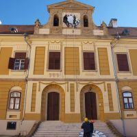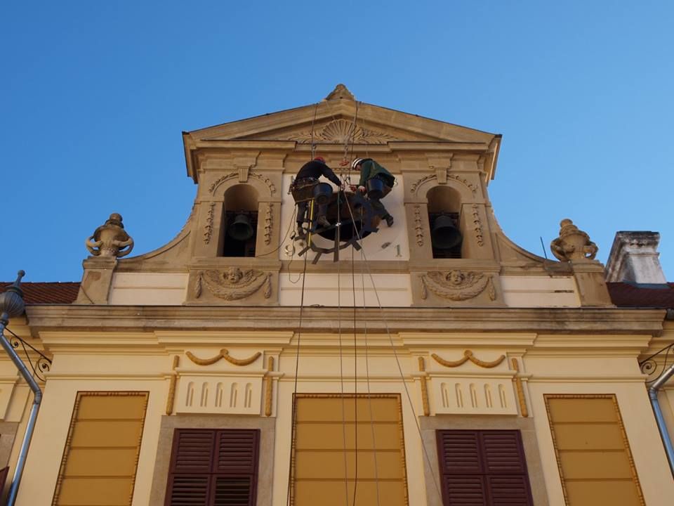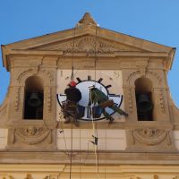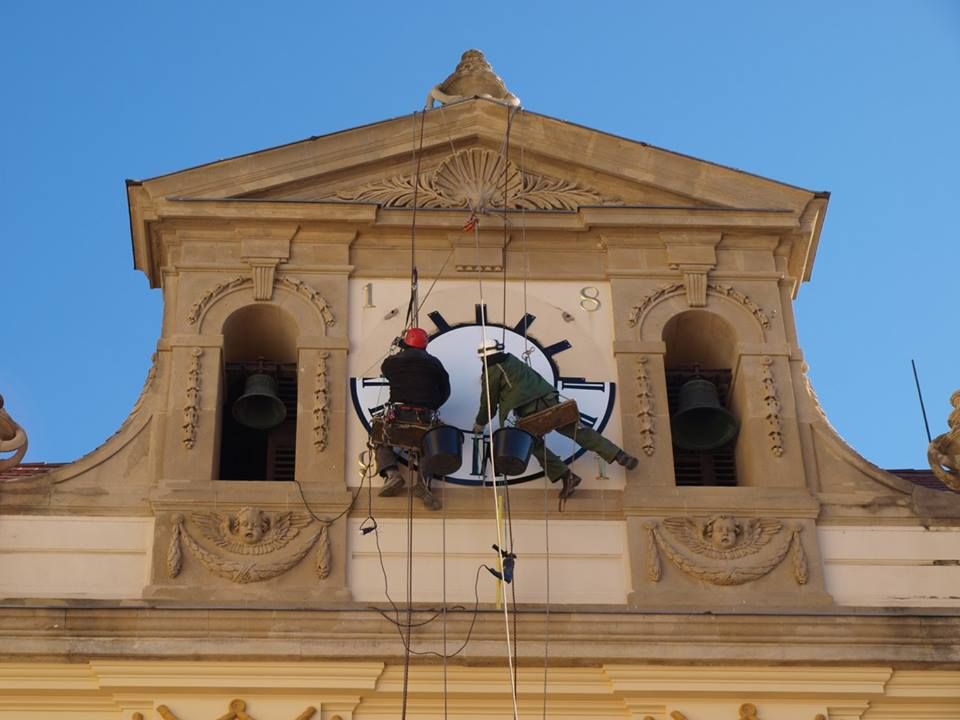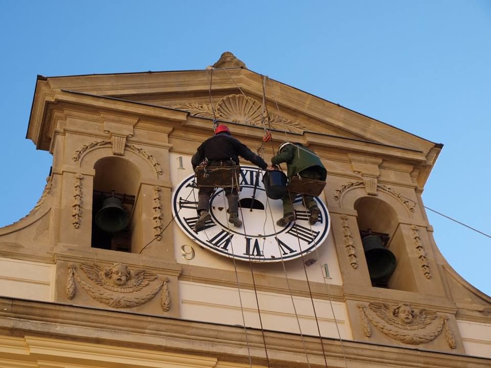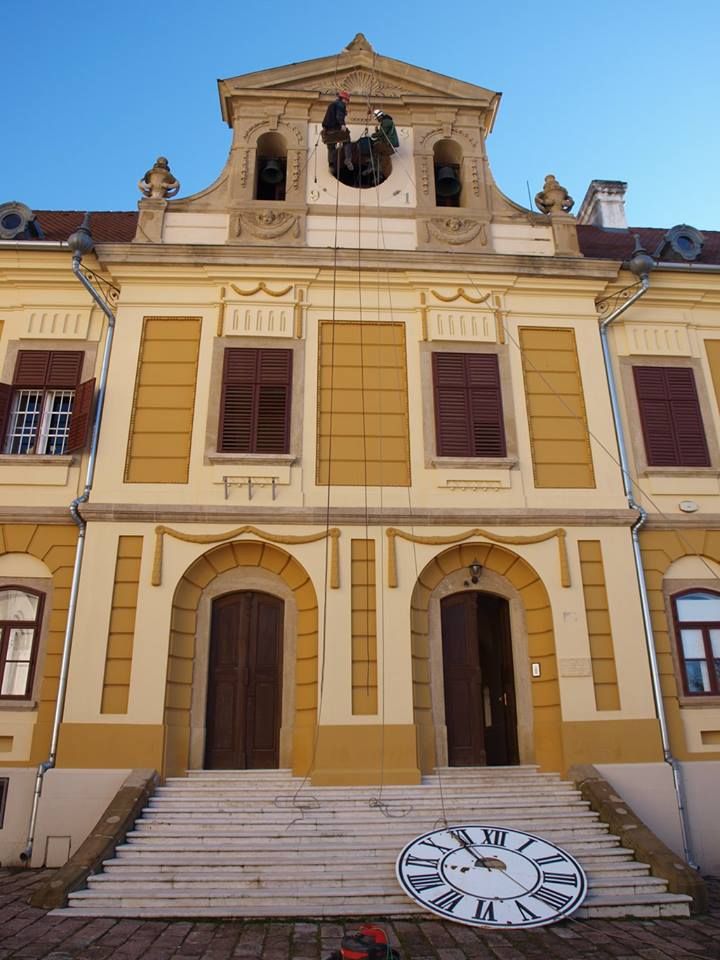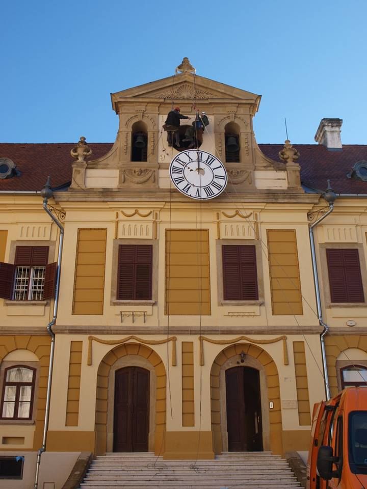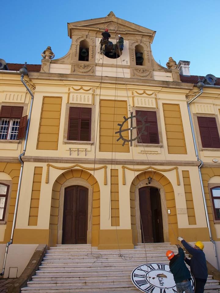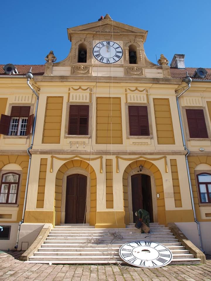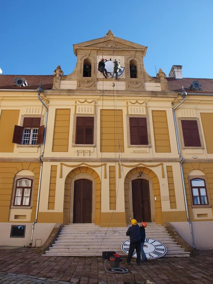 A Pécsi Egyházmegyei Levéltár épületének homlokzatán elhelyezkedő óralapot február 11-én cserélték le.