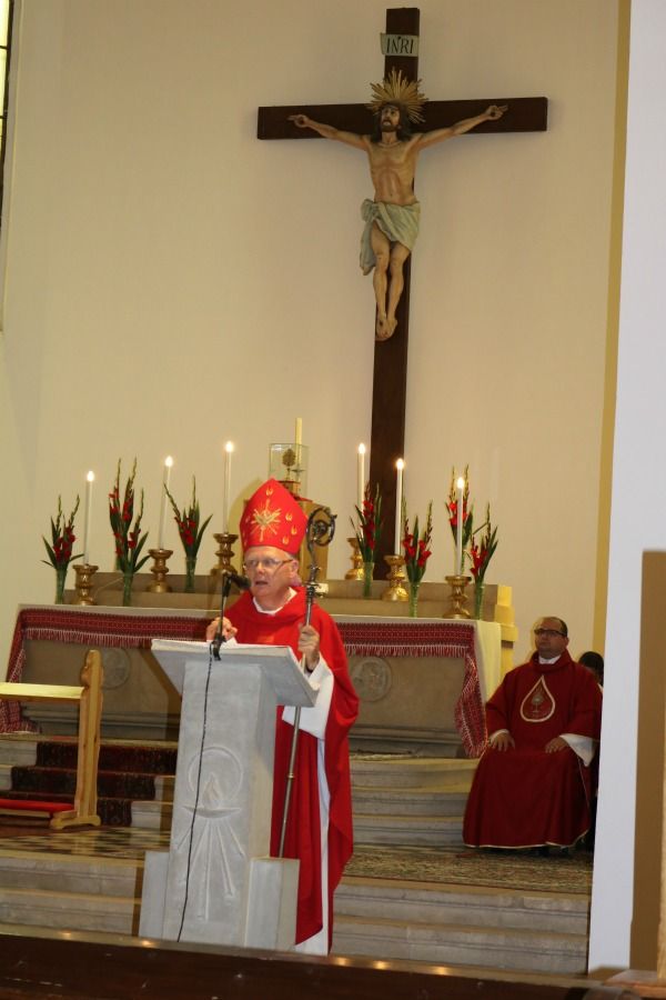 A püspök hozzátette: Jézus halálában a szeretet tökéletesedett be. A szeretet sosem önmagára irányul, mindig áldozattal jár. „Mikor lesz a fából tűz? Ha kellő hőfokon izzik a környezete, lángra lobban. Ilyen a szeretet tüze is, mely lángra lobbantja a szíveket."