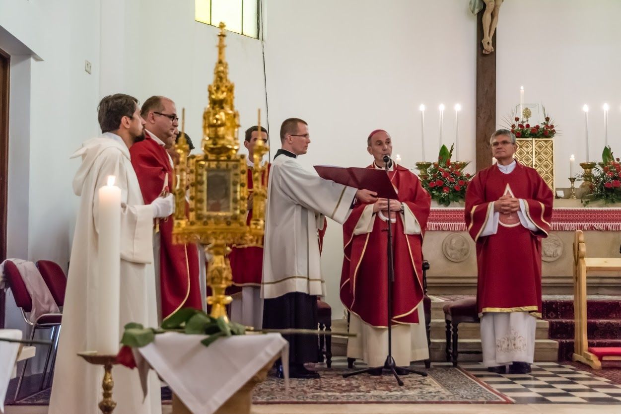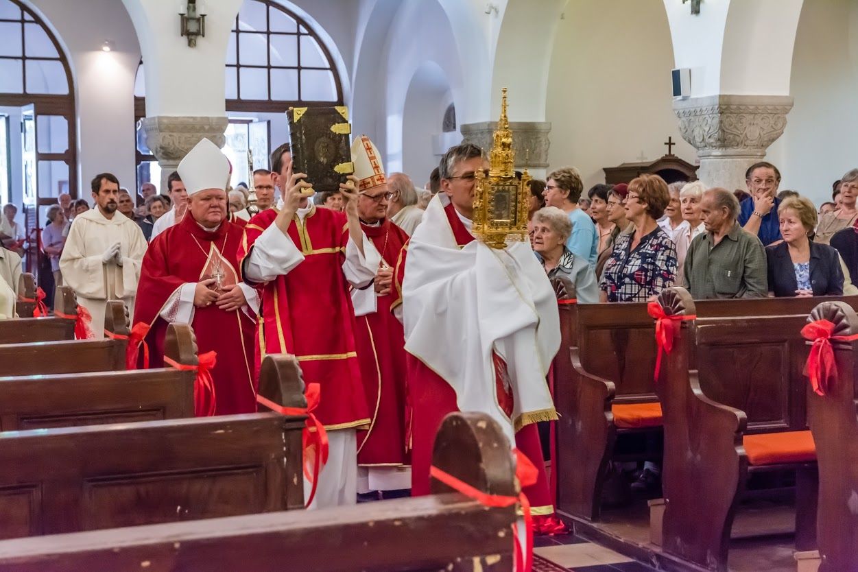 Viliam Judák nyitrai püspök a bátai zarándoklat záró szentmiséjén a garamszentbenedeki ereklyéből leválasztott részletet adott át Udvardy György pécsi megyéspüspöknek. Sümegi József írását az ereklye történetéről több részletben közöljük.