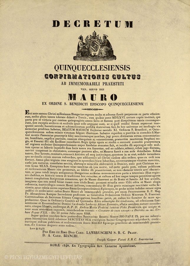 Október 25. Szent Mór, a Pécsi Egyházmegye társvédőszentjének ünnepe. A Szentszék 170 évvel ezelőtt emelte a második pécsi püspököt a szentek sorába. Az emléknapon a szentté avatási eljárás történetét ismertetjük.