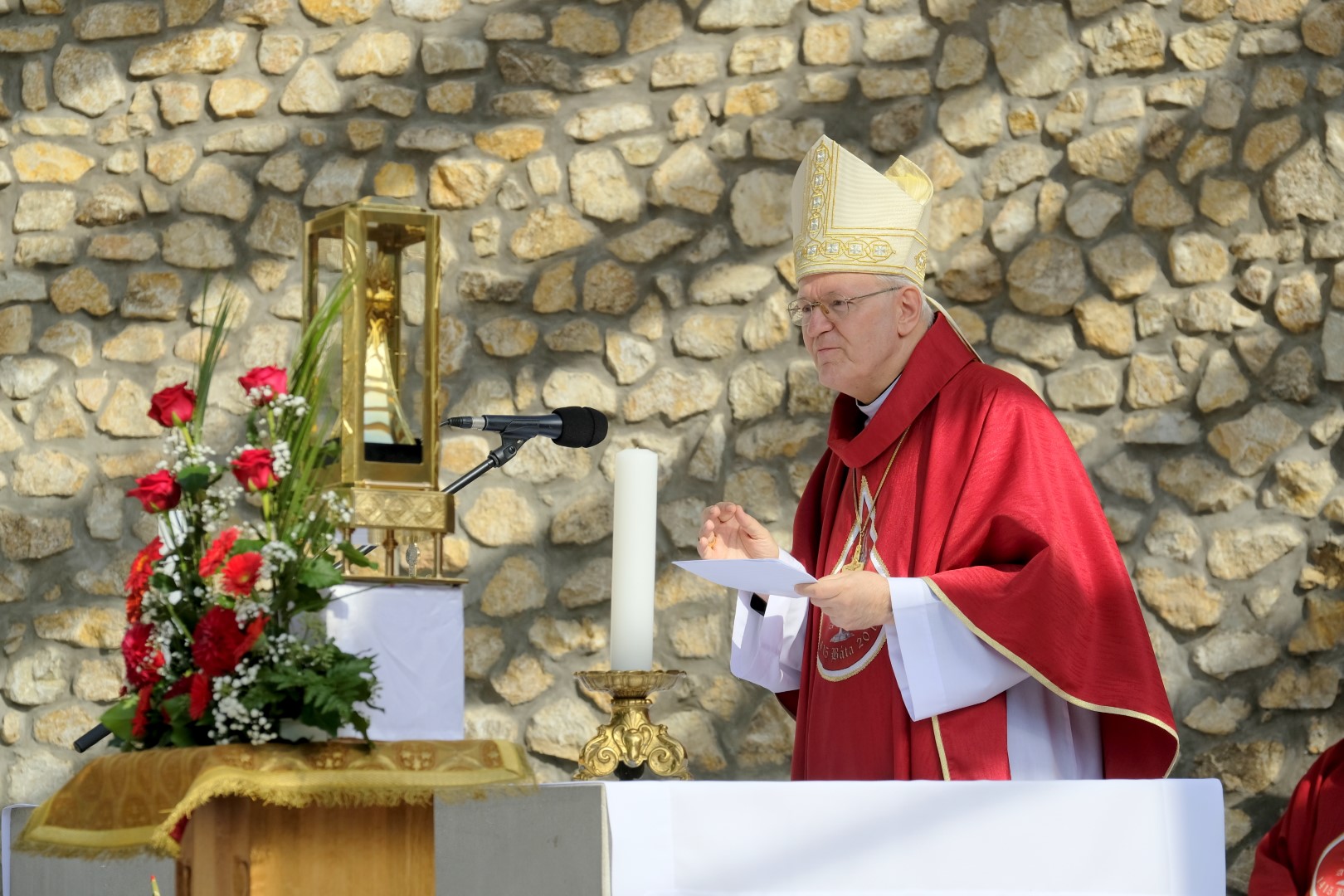 A szentmise végén Udvardy György megköszönte a munkálatok kivitelezésében résztvevő szakemberek munkáját. Háláját fejezte ki Kürtösi Krisztián plébános és Sümegi József diakónus uraknak, akik levezényelték a kegyhely megújítási munkálatait. „A magyar egyház egységét és jelképét is jelenti számunkra ez a hely” –fogalmazott.