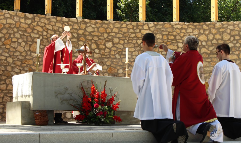 A búcsú alkalmával Nyúl Viktor pasztorális helynök celebrált szentmisét, aki a homíliában hangsúlyozta, ez a nap arra hív, hogy feltekintsünk a keresztre és szemléljük az értünk vérző Jézust! Szent II. János Pál pápa szavait idézve arra biztatott, tekintsünk Jézusra, mert akit, és amit szemlélünk, azzá formálódik a gondolkodásmódunk. „Emeljük lelki szemünket a Szent Vér ereklyére, amely Jézus véréből való!” – mondta az atya, majd a Szent Vér ünnephez kapcsolódóan három fontos aspektust említett. Elsősorban arra világított rá, hogy Jézus Vére Isten gondoskodásának szimbóluma, annak a jele, hogy szabaddá tette a népet.