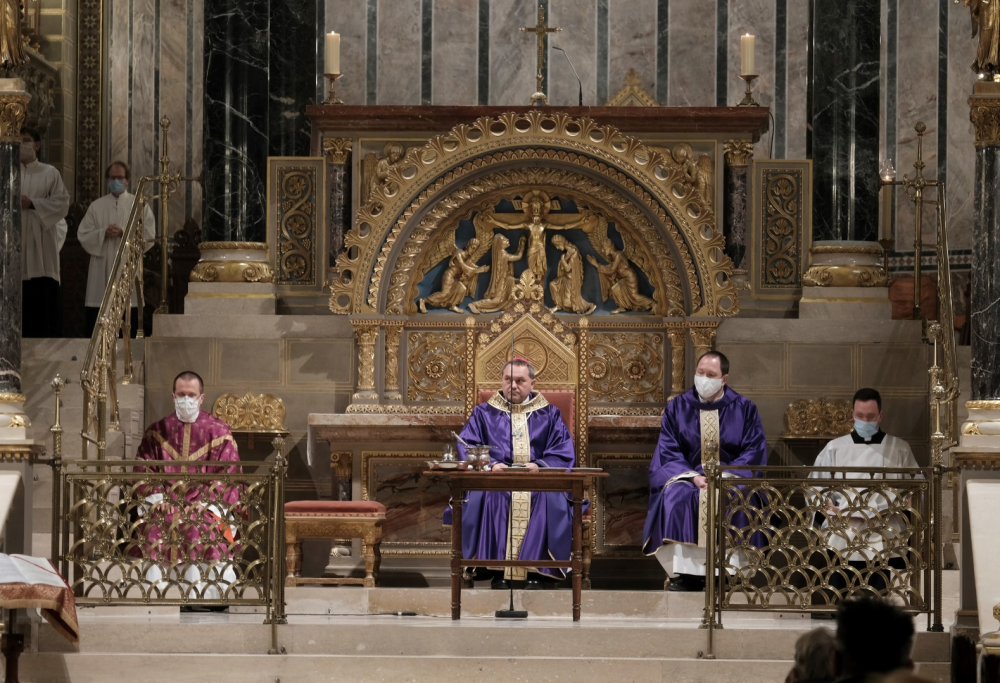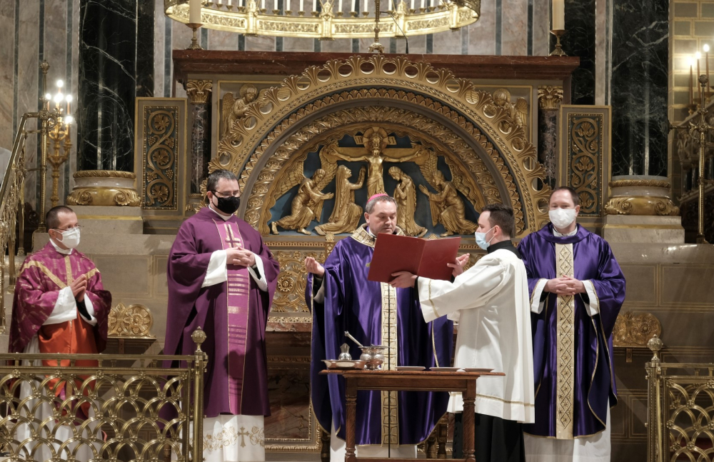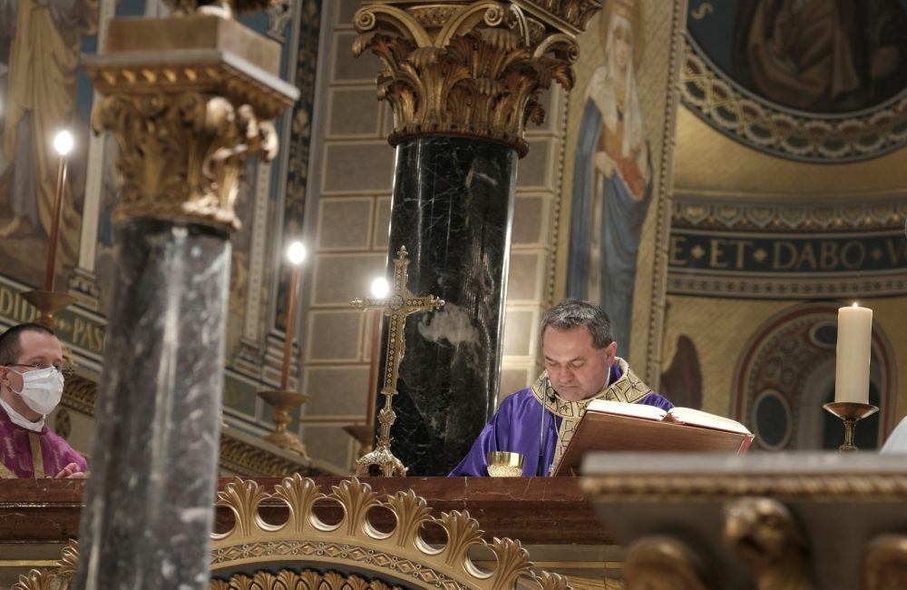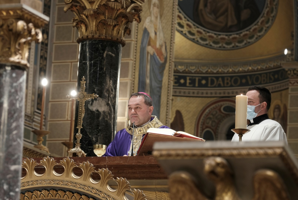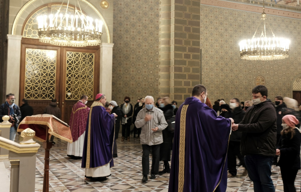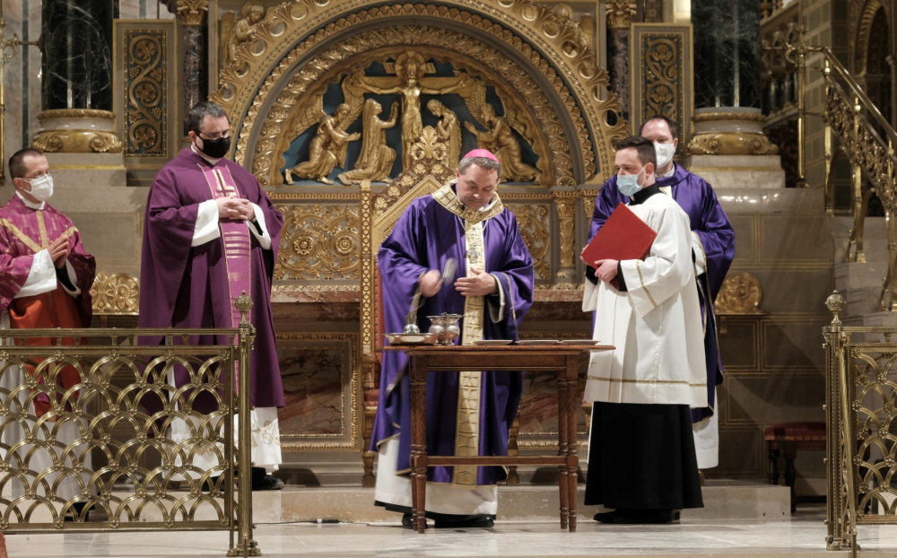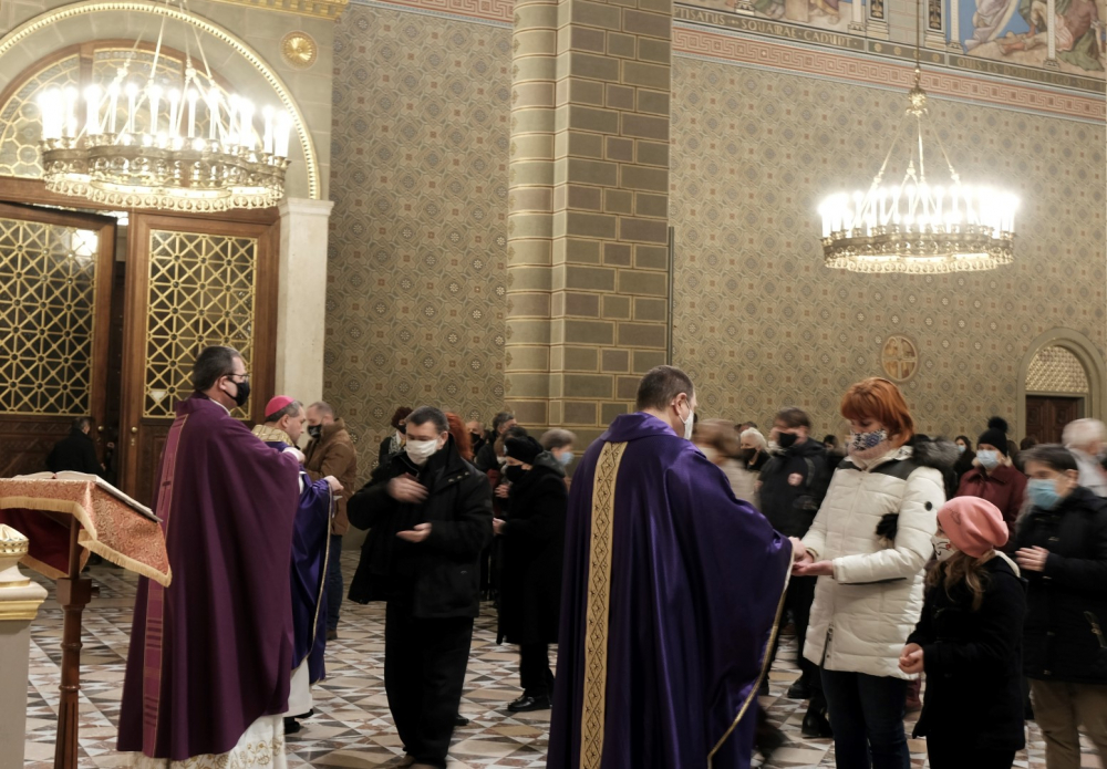 A járványügyi intézkedések betartásának érdekében a hagyománytól eltérően Felföldi László pécsi megyéspüspök a szentmisét követően áldotta meg a hamut, majd sor került a hamvazkodás szertartására.