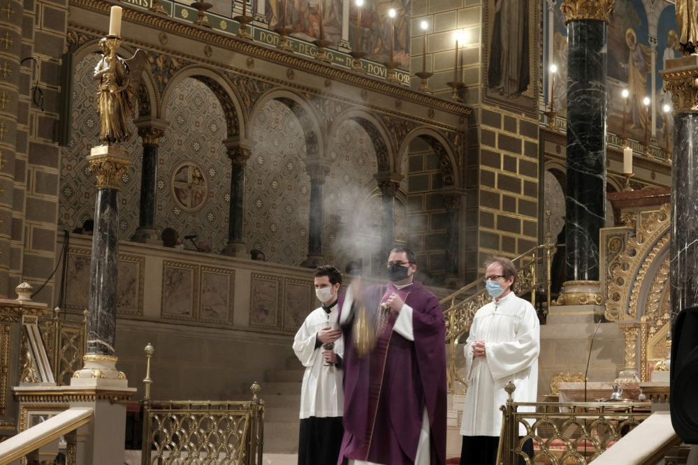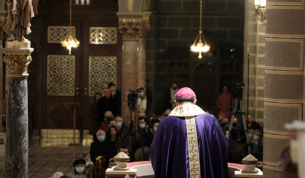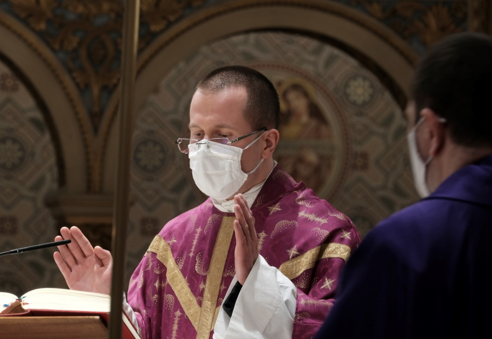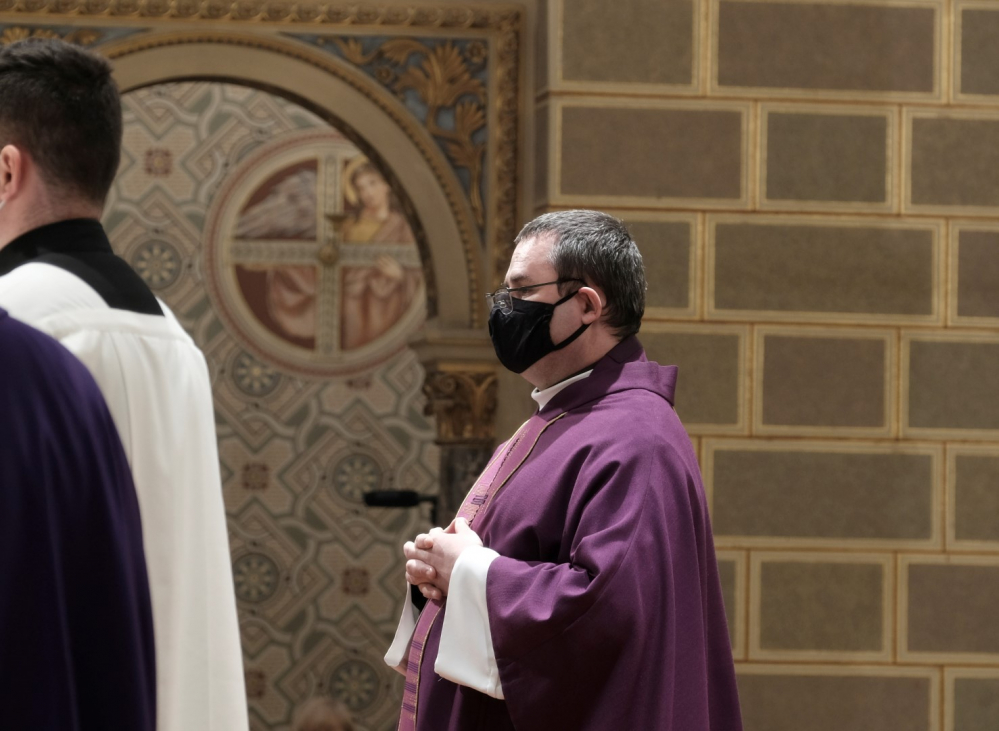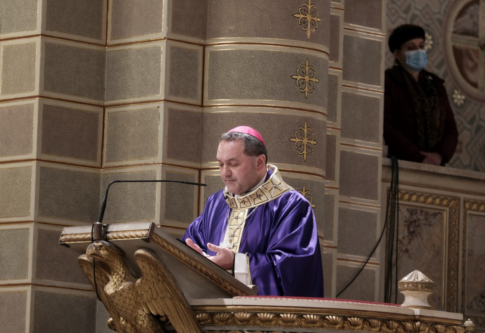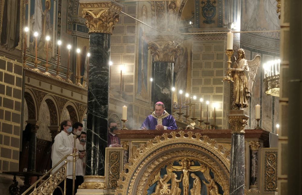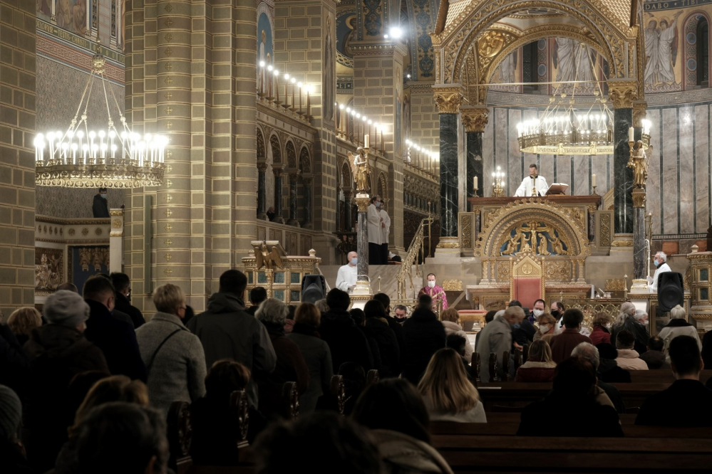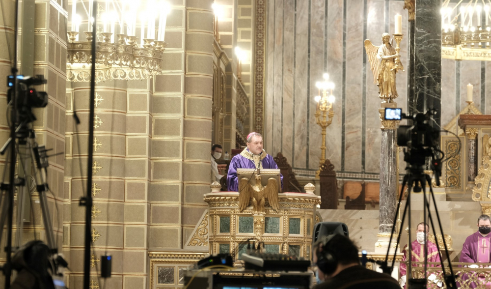 A járványügyi intézkedések betartásának érdekében a hagyománytól eltérően Felföldi László pécsi megyéspüspök a szentmisét követően áldotta meg a hamut, majd sor került a hamvazkodás szertartására.