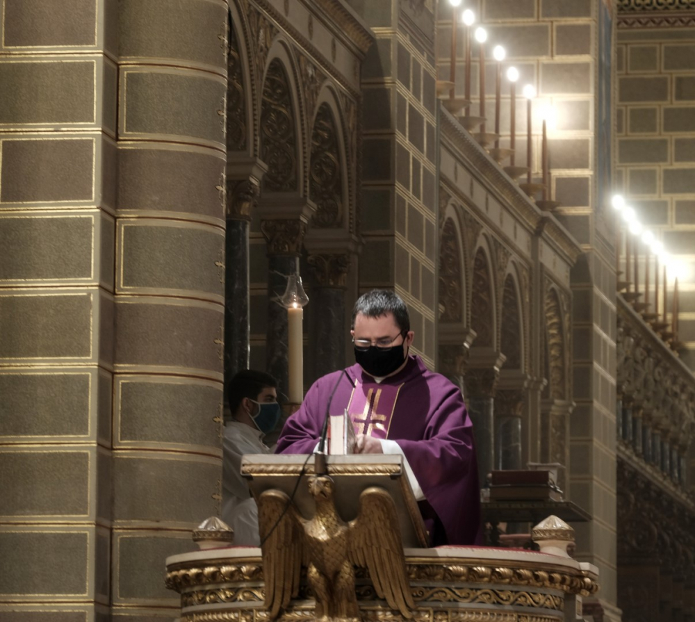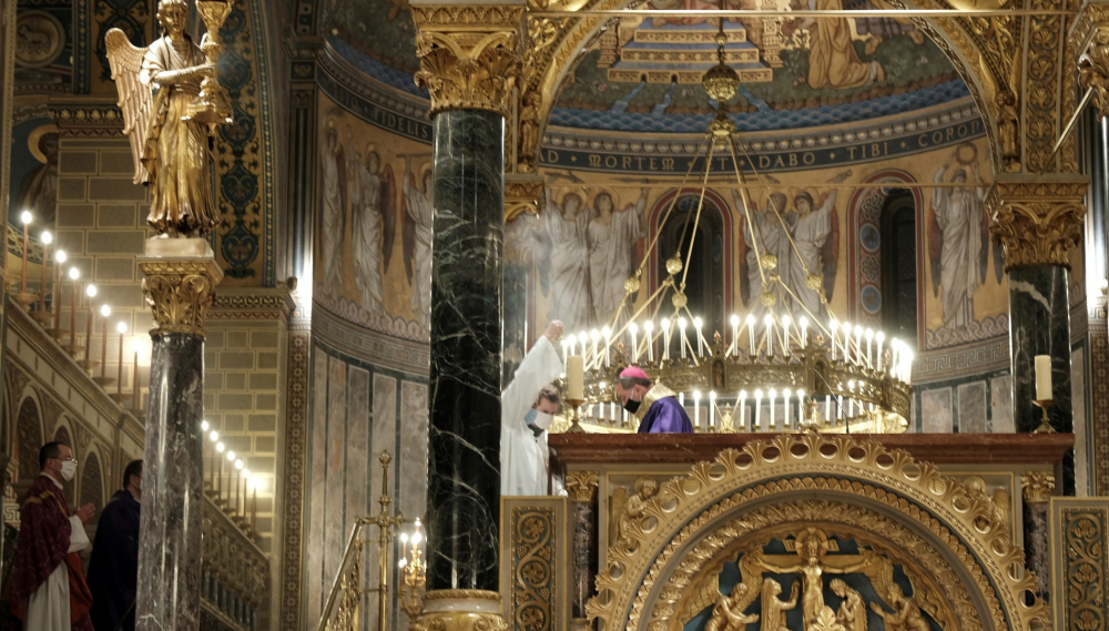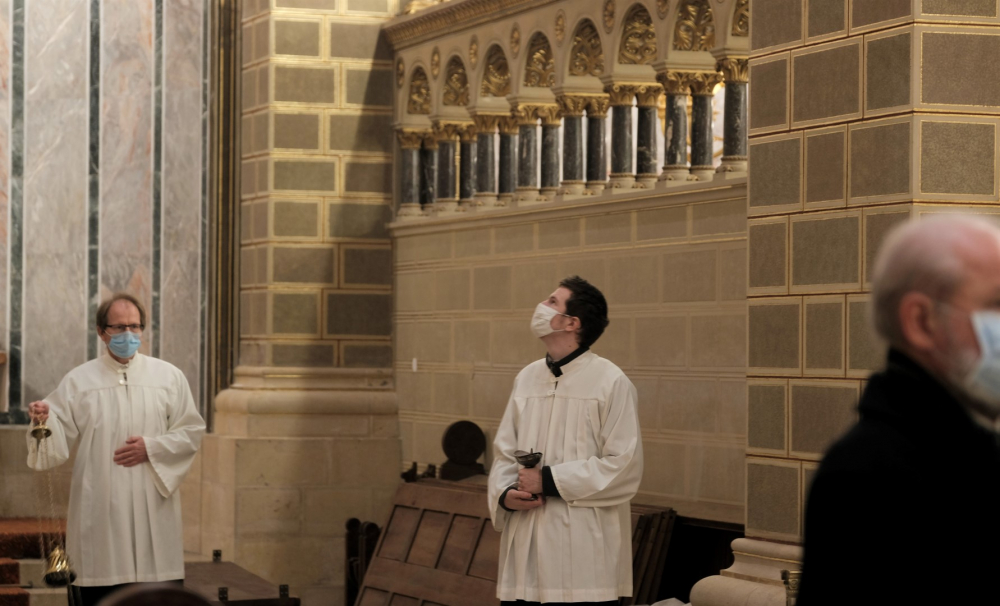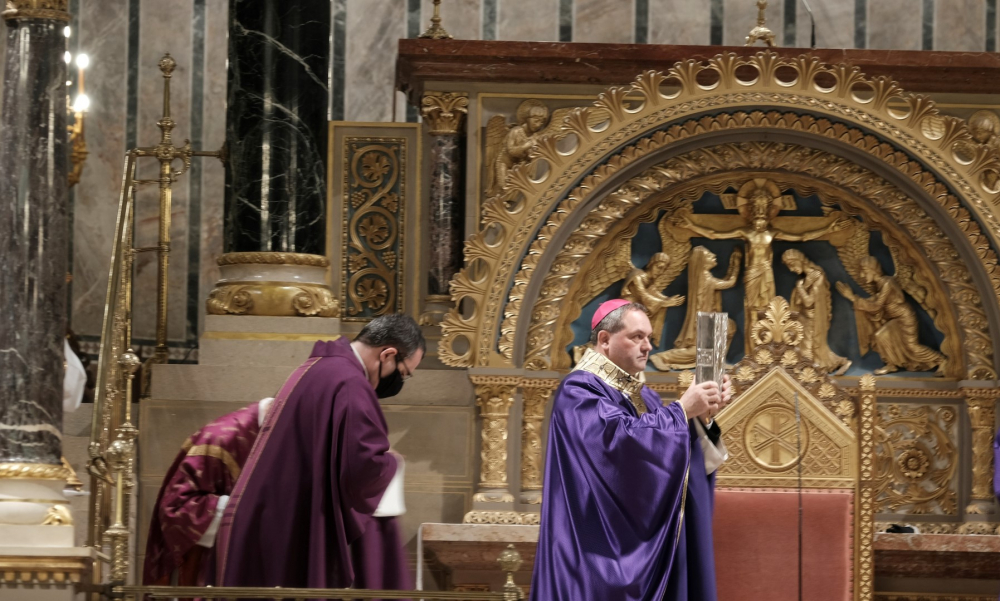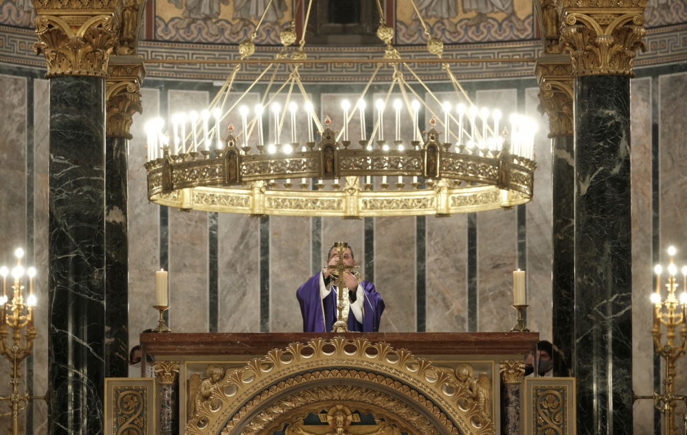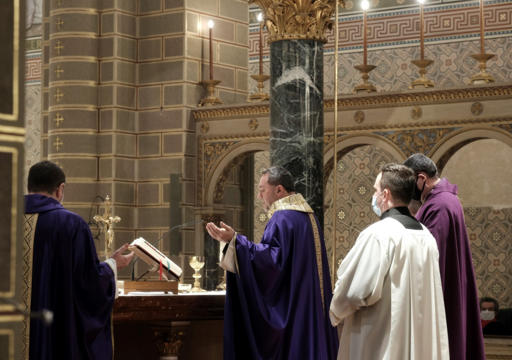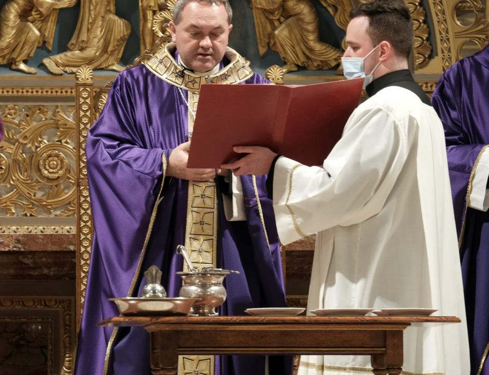 A járványügyi intézkedések betartásának érdekében a hagyománytól eltérően Felföldi László pécsi megyéspüspök a szentmisét követően áldotta meg a hamut, majd sor került a hamvazkodás szertartására.
