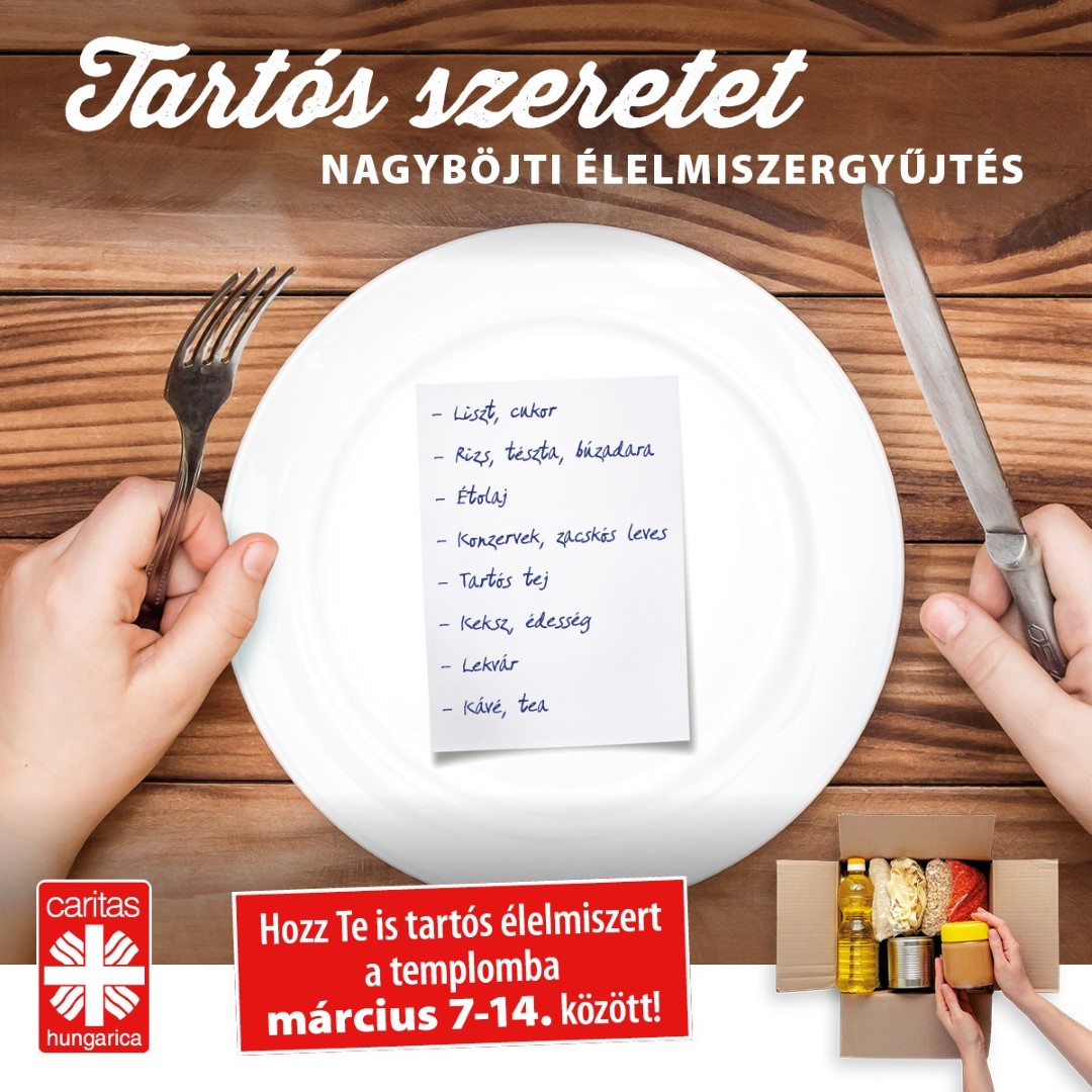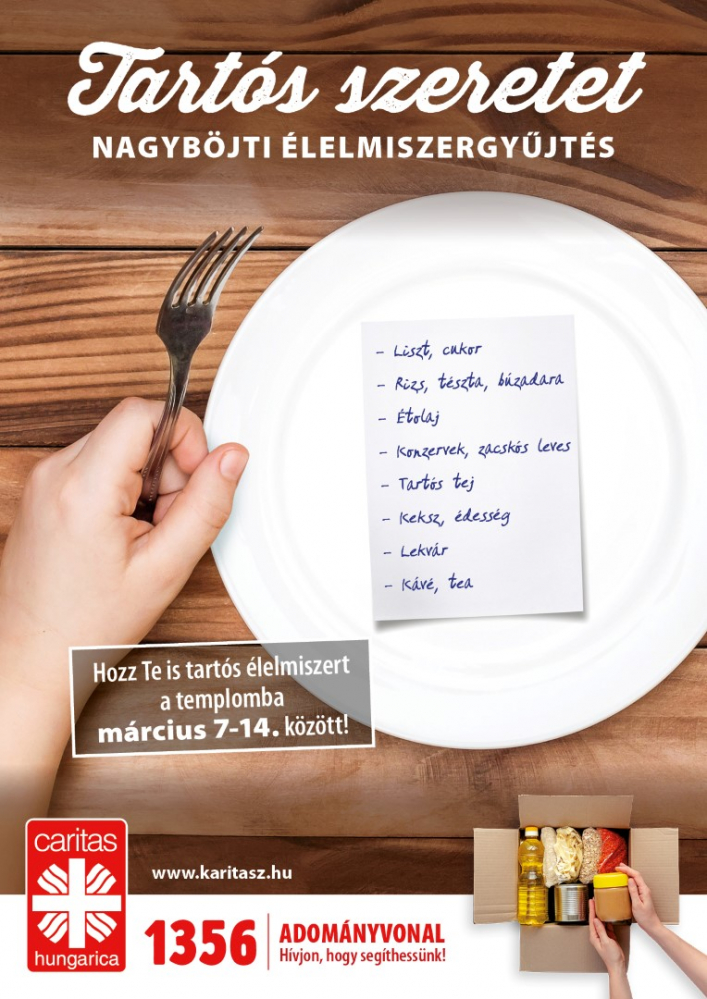 A Magyar Katolikus Püspöki Konferencia minden évben meghirdeti hazánk templomaiban a nagyböjti élelmiszergyűjtést. A Tartós szeretet címmel meghirdetett országos gyűjtés során a templomokban az erre kijelölt helyen helyezhetik el felajánlásaikat, valamint az egyházmegyei karitászközpontok és adománypontok is fogadják az adományokat.