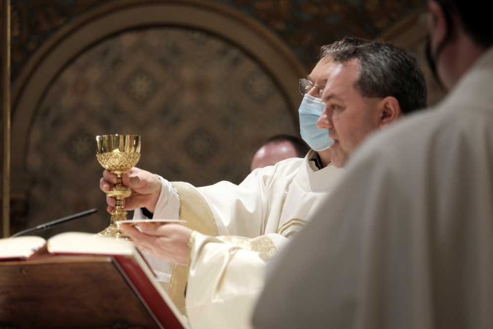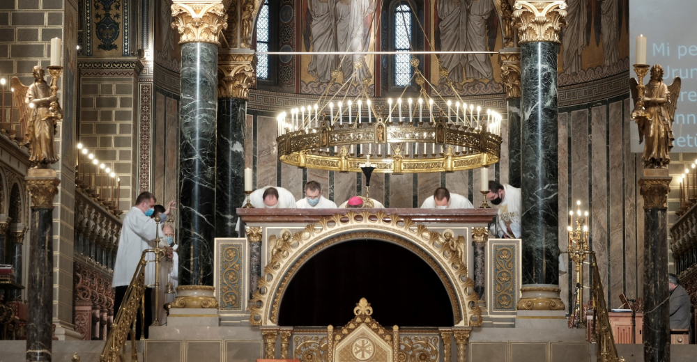 Nagycsütörtökön, a húsvéti szent három nap első állomásán, Jézus elárultatásának és elfogatásának napján, az Oltáriszentség alapításának ünnepén, Felföldi László pécsi megyéspüspök mutatott be szentmisét az utolsó vacsora emlékére a Székesegyházban.