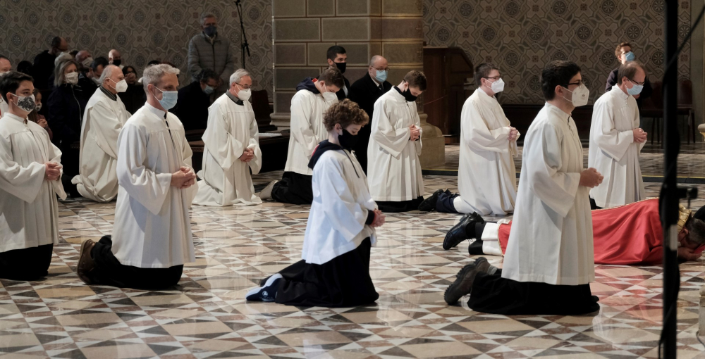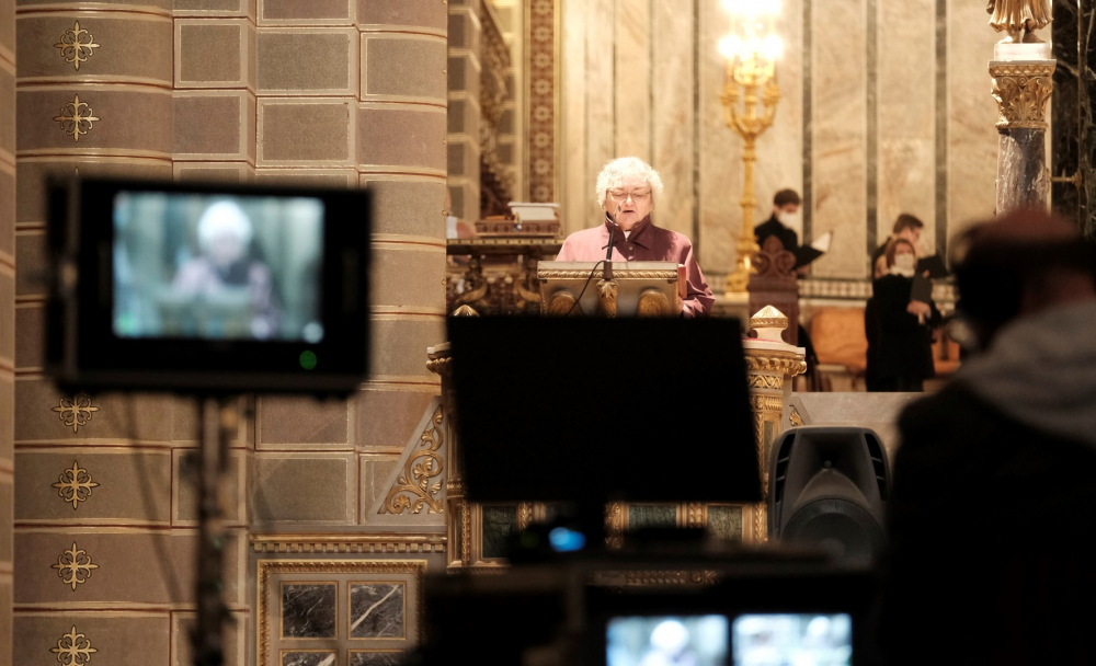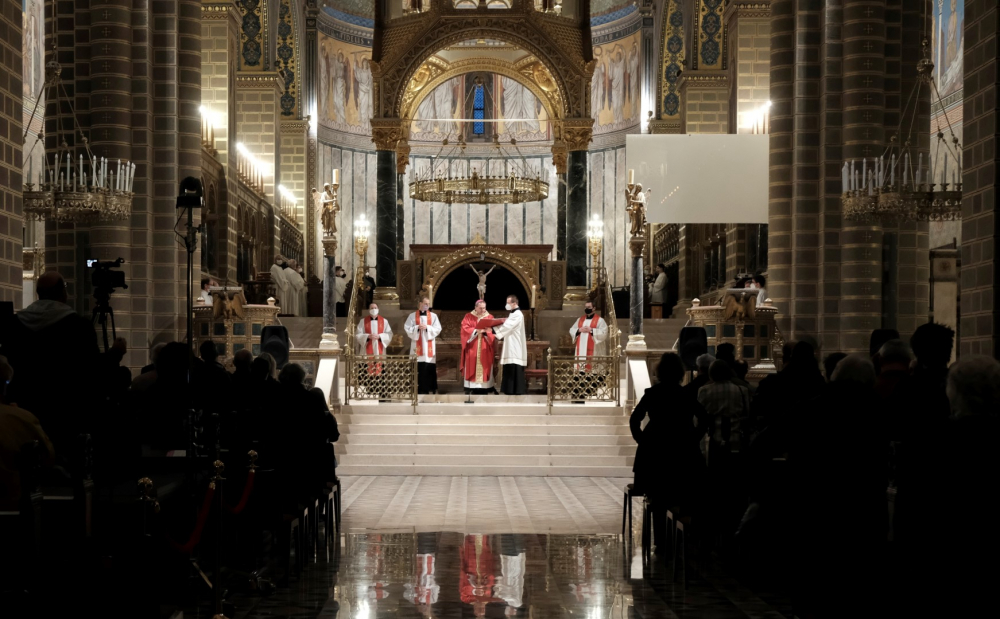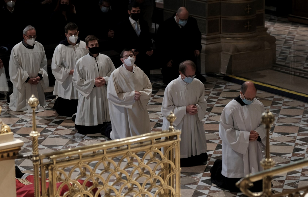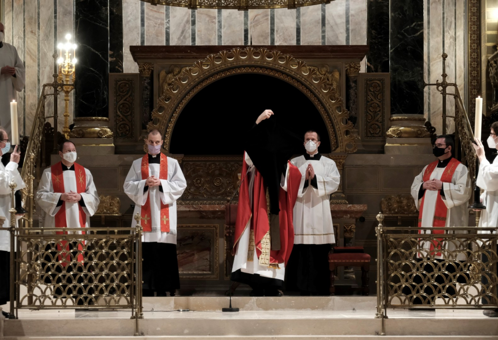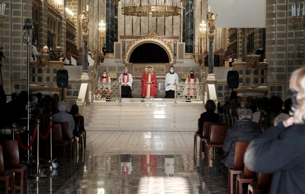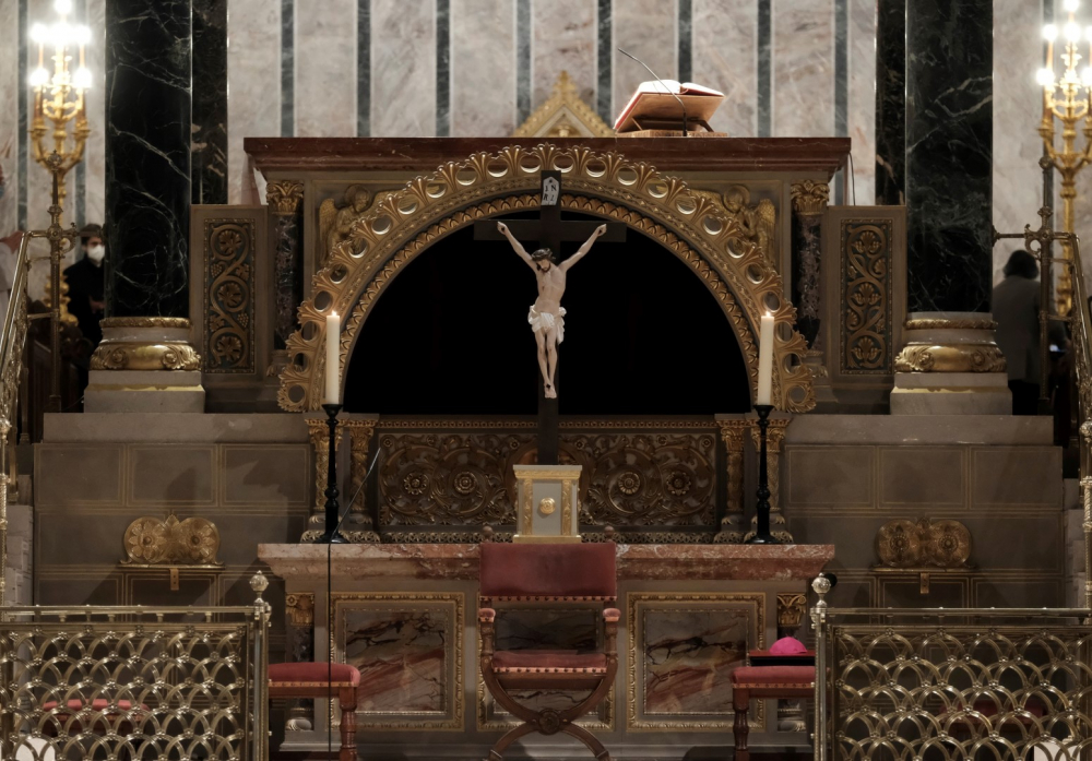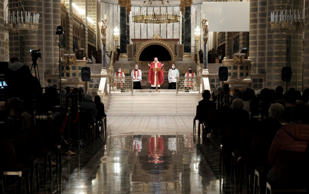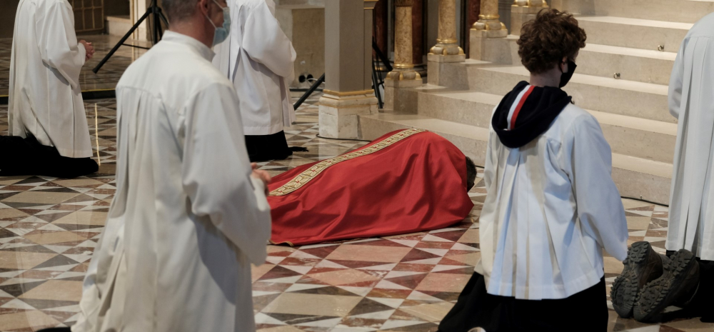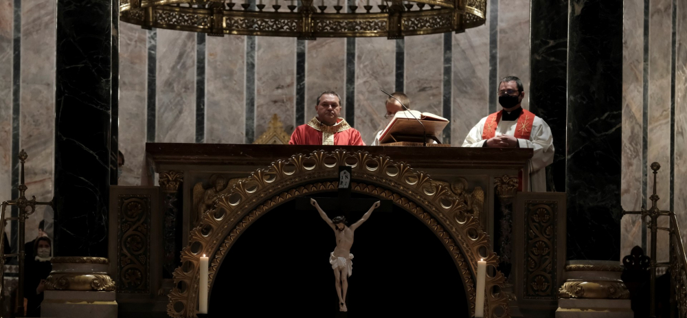 Urunk szenvedésének ünnepén a liturgia könyörgésselfolytatódott, mely abban tért el a megszokottól, hogy a megyéspüspök, a papság, az asszisztencia és a hívek a járványban megbetegedettekért, az elhunytakért, és a szeretteiket elvesztőkért külön imádkoztak. Ezt követően került sor a feszületet borító fekete fátyol levéltelére és a kereszthódolat megrendítő, ugyanakkor szép szertartására.Ennek során a jelenlévők egyként hajtottak térdet a kifeszített Jézus előtt. Végül a főpásztor csendben újra díszítette az előző esti, nagycsütörtöki szertartáson megfosztott oltárt, mire a szertartás kezdetén beszűrődő fény is elhalványult.