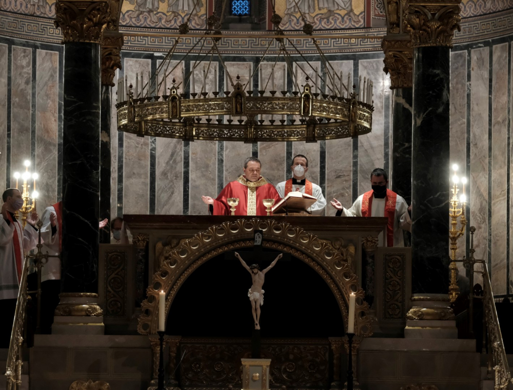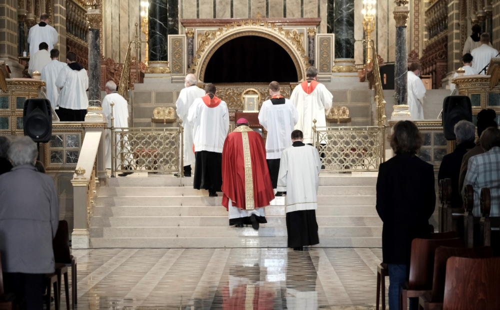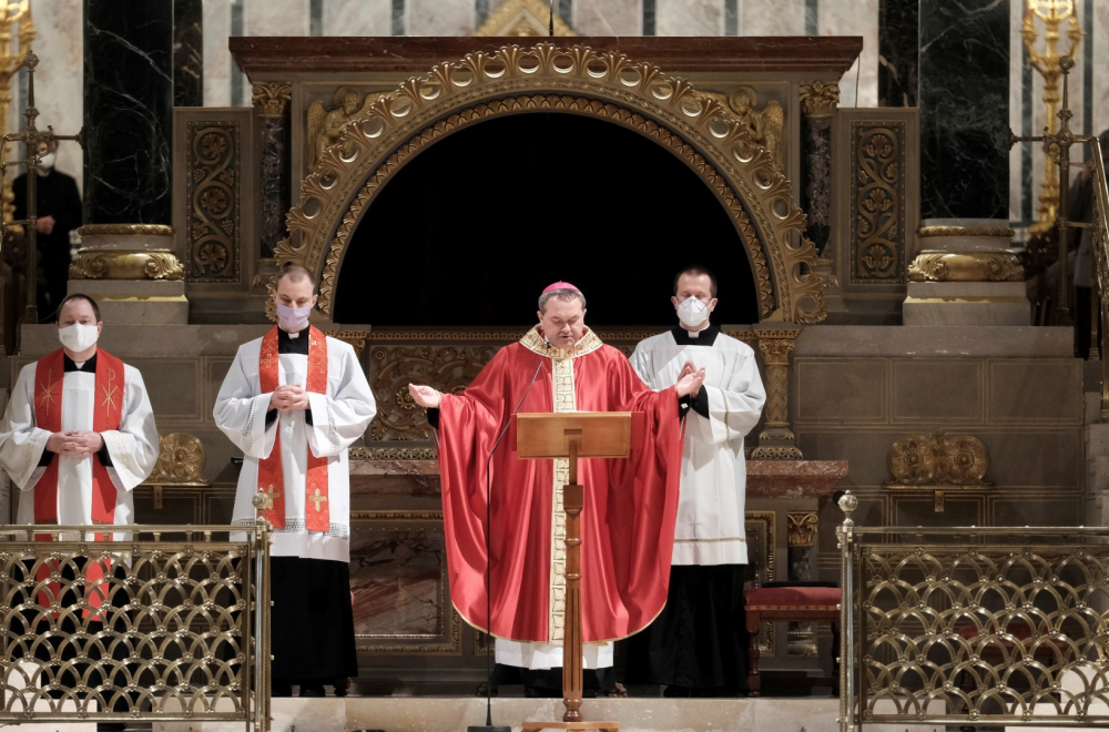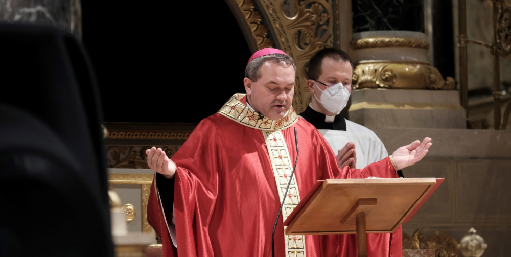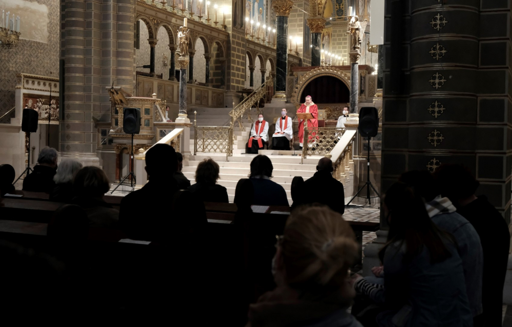 Urunk szenvedésének ünnepén Felföldi László pécsi megyéspüspök vezetett úgynevezett csonkamisét a Pécsi Székesegyházban.