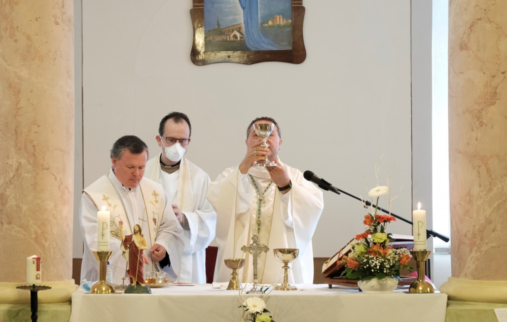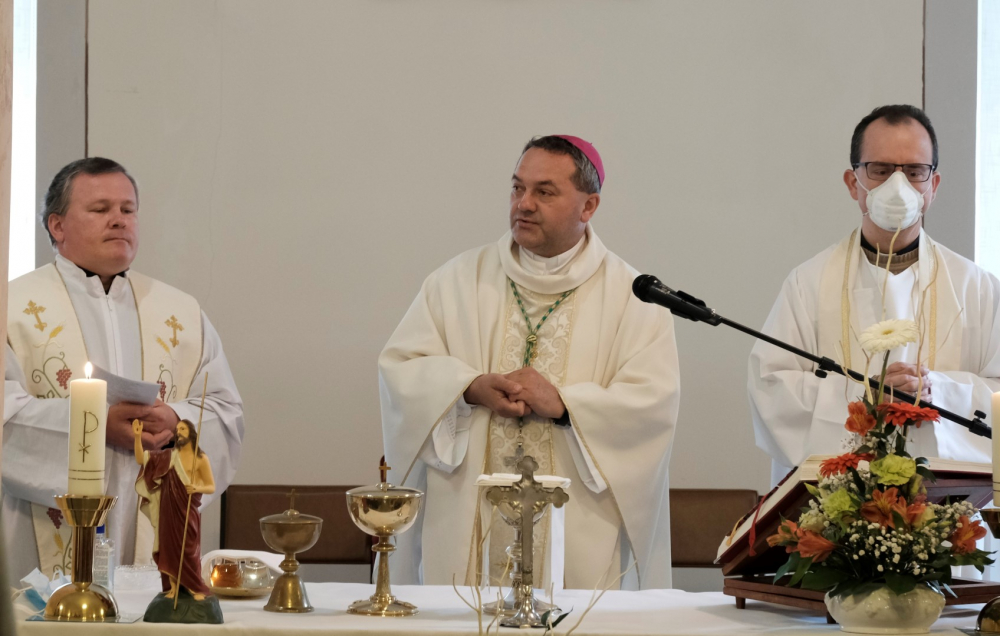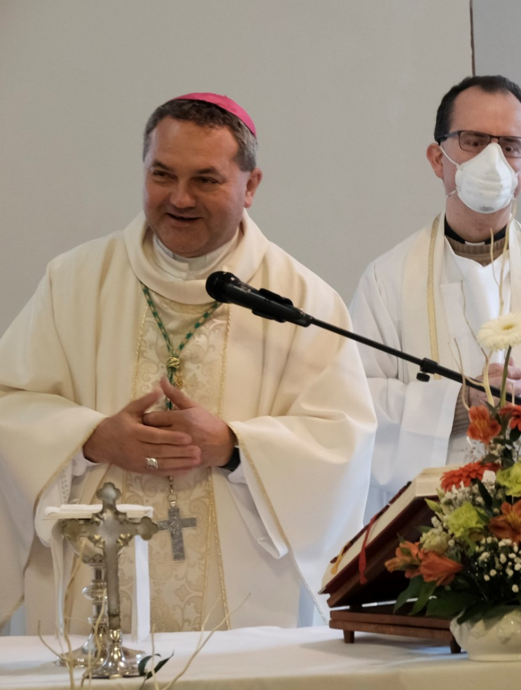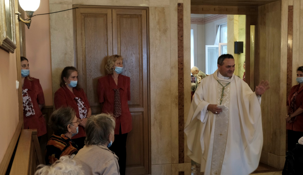A látogatás több okból is különleges volt. Egyrészt mindenki számára nagy örömöt okozott püspök atya érkezése, amit a szabályozások enyhítése tett lehetővé, emellett a szentmise homíliája is meglepetést okozott. Felföldi László megyéspüspök – figyelembe véve az idős emberek korlátozott mozgási lehetőségeit, valamint a tér adottságait – az oltár elé kilépve, szép gesztusként közelebb ment a kerekesszékben ülő gondozottakhoz, hogy számukra is jól hallható és látható legyen. Ezzel főpásztorunk nem csupán szeretetteljes figyelmet közvetített, hanem megcselekedte azt, amire minket is buzdít: „Merjünk kilépni a megszokottból! Tudom, hogy azok a testvéreim, akik a gondozóotthonban élnek, egy kedves házat, lakást, szobát hagytak maguk mögött. Talán már megvolt mindenük, amikor egészségügyi okokból el kellett hagyniuk szeretett otthonukat. De ne feledjük, hogy otthon az, ahol Krisztus van!” – hangsúlyozta, majd az ápolószemélyzethez és munkatársaikhoz fordult. Az a szép és társadalmilag is igen fontos feladat, melyet a szakemberek végeznek, olykor sok nehézséggel jár, ezért szükség van a támogatásra.