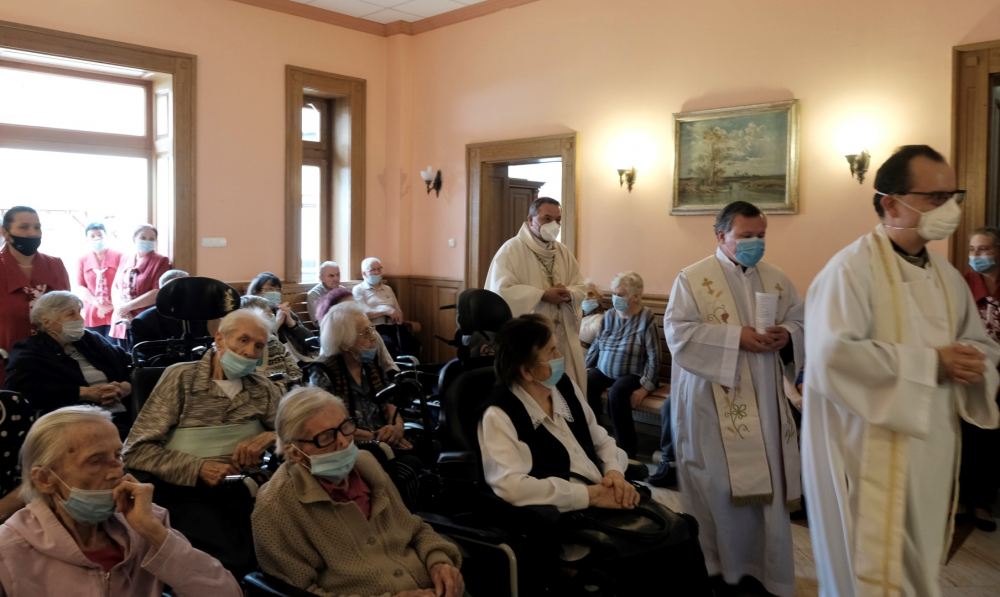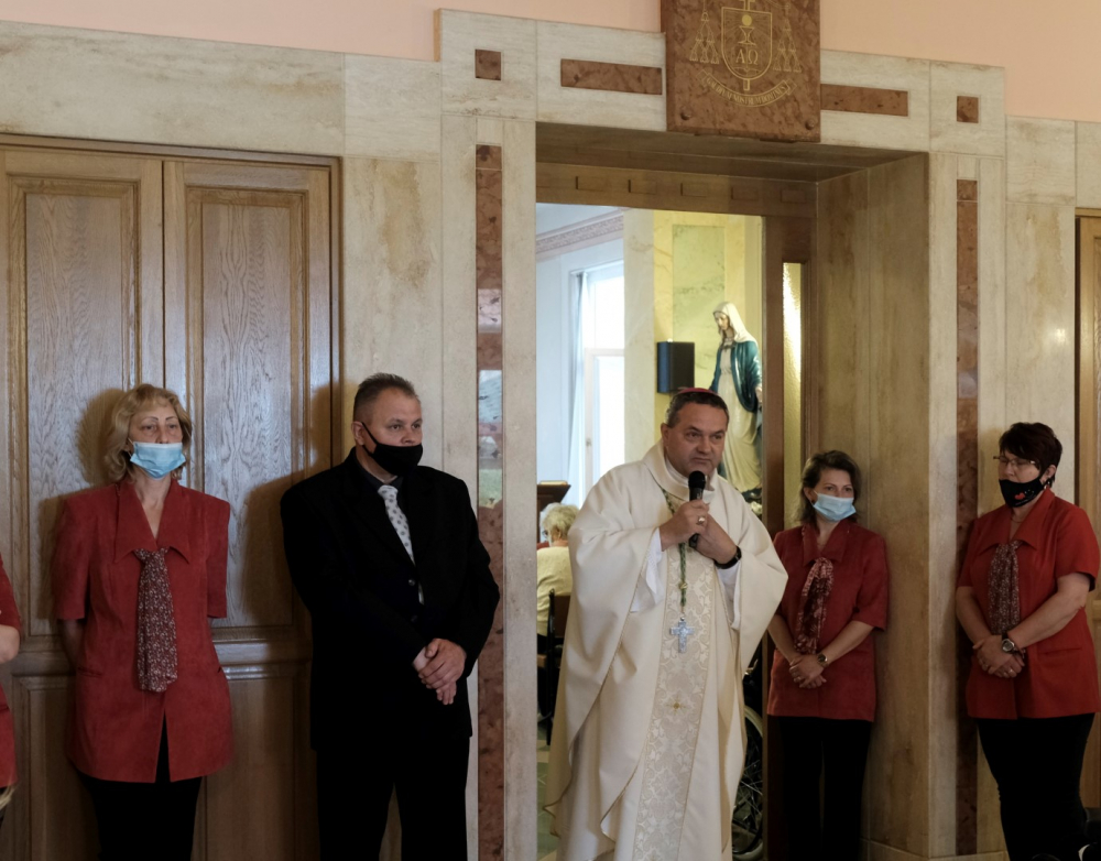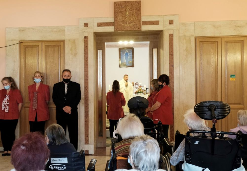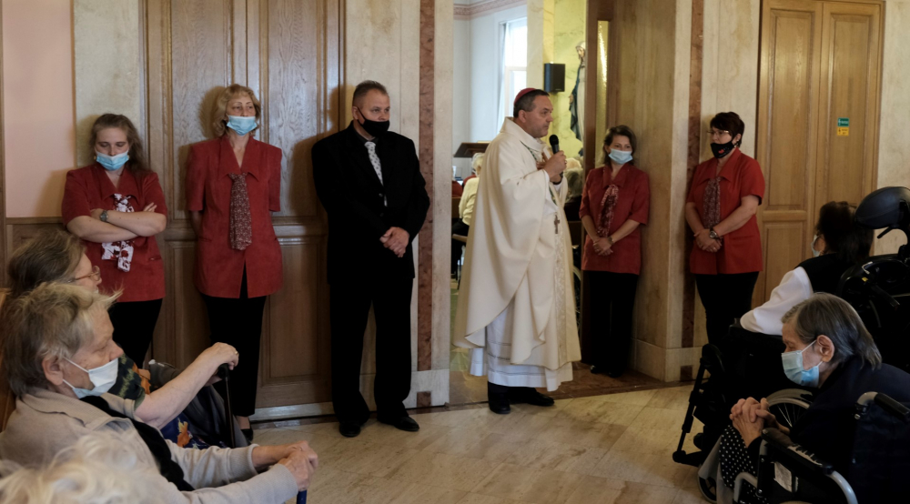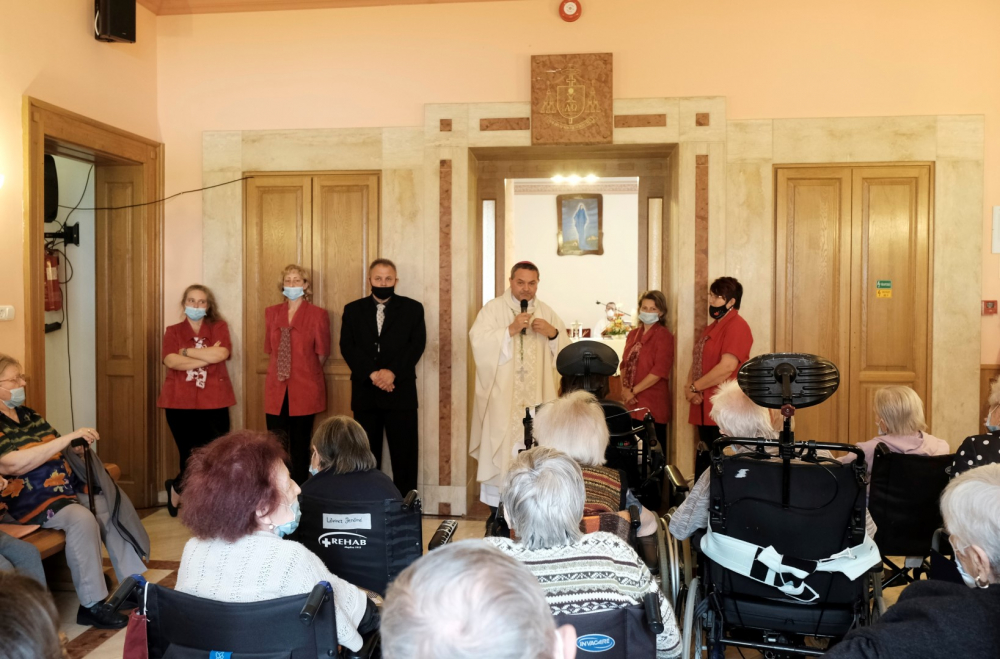 Május 12-én, szerdán 10.00 órakor különleges vendéget fogadtak a gondozóotthon lakói és munkatársai. A hosszú hónapokig tartó látogatási korlátozás enyhítésével az idős emberek nem csupán szeretteiket láthatták viszont az elmúlt napokban, hanem a megyéspüspök is ellátogatott hozzájuk. Schäffer Zsuzsanna, az intézmény igazgatója boldogan fogadta a főpásztort, akinek szentelését és beiktatását követően, a pandémia okán első alkalommal volt lehetősége személyesen megismerni az otthon lakóit, akiket őszinte szeretettel üdvözölt.