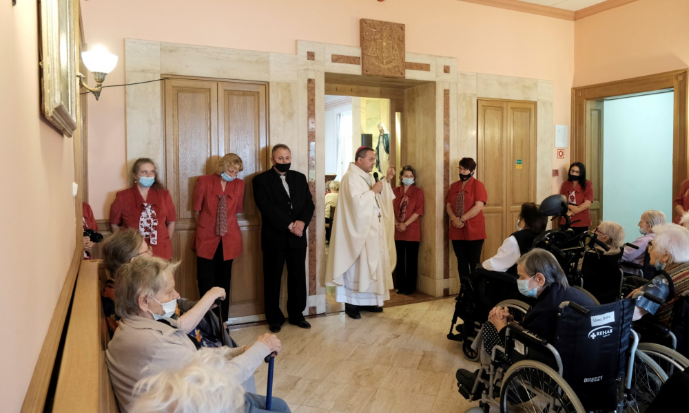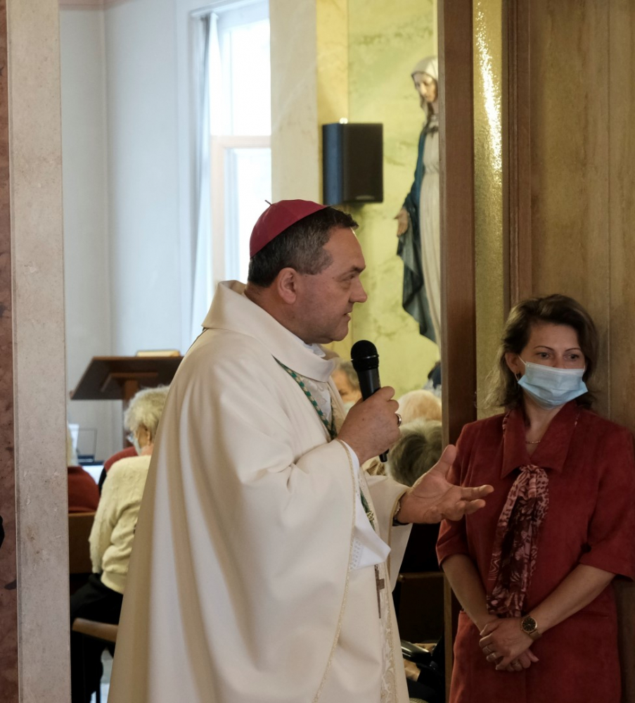 A szentmisét követően a megyéspüspök az igazgató asszony és munkatársai vezetésével bejárta a Skóciai Szent Margit Gondozóotthon épületét, találkozott a lakókkal és Isten végtelen szeretetének befogadására buzdította őket.