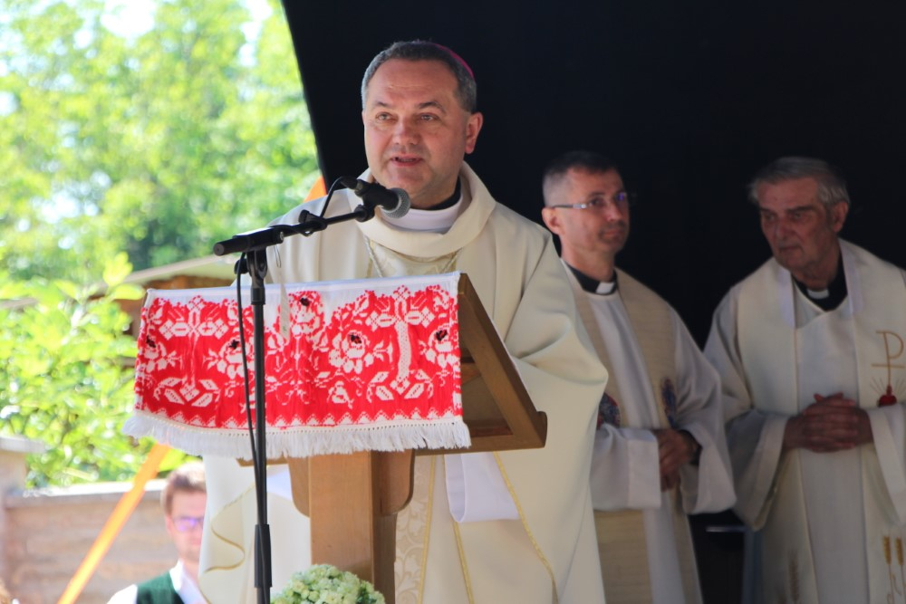 Homíliája elején köszöntötte a jelenlévőket és átadta a djakovói érsekség üdvözletét, majd visszaemlékezett pályája kezdetére, amikor sok gyerek volt jelen a miséken. Rosszalkodtak, hangoskodtak, ezért, – hogy megszüntessék ezt a viselkedést – bevezette, hogy a mise végén mindannyian hangosan énekeljék: szelíd és alázatos szívű Jézus, alakítsd szívünket a te szíved szerint. Ez mindenkinek tetszett. Olyan igehirdetőkre is emlékezett, akik mint népi tribunusok hangosan szóval álltak a hívek elé és – különösen nagyböjt idején – arra buzdították a híveket, térjenek meg, ne vétkezzenek, készüljenek a húsvéti gyónásra. Ma már ilyen lángszavú prédikátorok nincsenek. Ők igazi népi misszionáriusok voltak, akik néha sötétbe burkolózott templomban, a fejüket megvilágító gyertya alatt prédikáltak. A mai plébánosok szkeptikusok, nem járják ezt az utat, hanem másikat választottak.