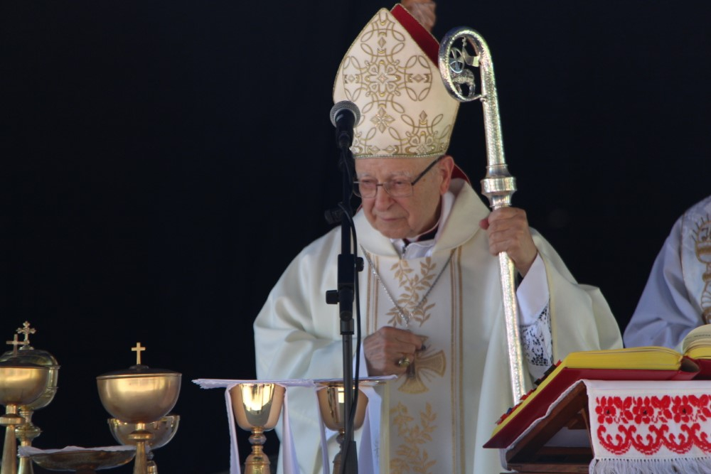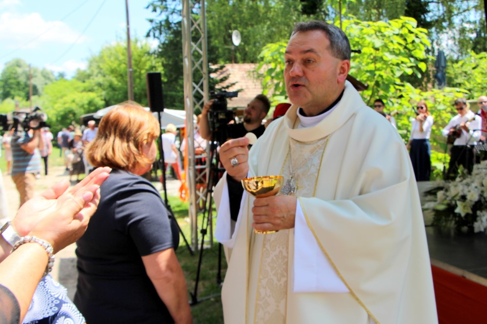 Köszönjük meg Istennek, hogy Ő a szeretet! Legyen hála és köszönet Jézusnak, és Önöknek, kedves zarándokok, hogy ma eljöttek ide, és értékelni tudják, megértik, hogy Isten a határok nélküli szeretet, aki megteremtette az embert. A határ csak a szívünk, amely mégis képes befogadni a határtalan Istent, a hála jegyében, a teremtésért, a megváltásért a Szentlélek ajándékaiért.”