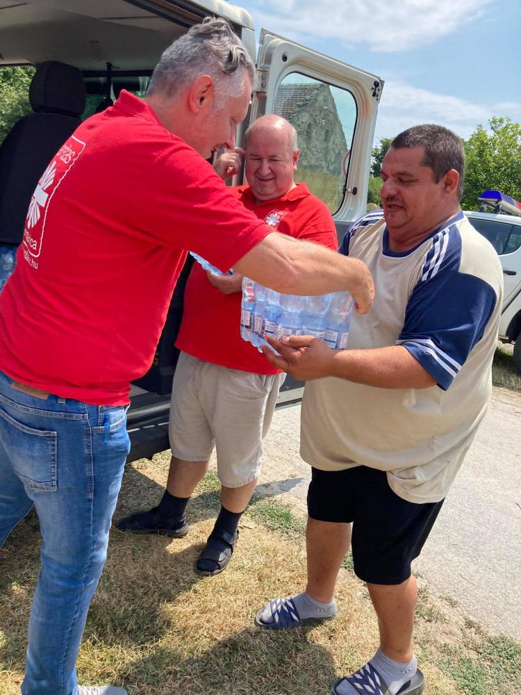 Vasárnap délelőtt két helyszínről indított a Karitász élelmiszeradományt a érintett településekre, ahol összesen több, mint 3000 ember él. Pécsről két teherautónyi palackozott vizet, pékárut, zöldséget, gyümölcsöt, valamint a székesfehérvári raktárból egy mikrobusznyi friss pékárut, tartós élelmiszert szállítottak a térségbe.