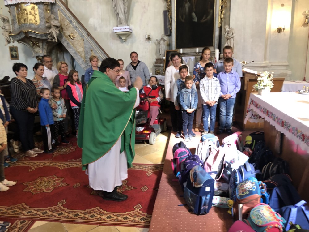 Szerető Mennyei Atyánk! A Te oltalmazó kezeidbe ajánljuk ezeket a gyermekeket. Légy mindig velük a sikereikben és a kudarcaikban, az örömeikben és a fájdalmaikban! Áldd meg ezeket a táskákat és azok hordozóit! Szentlelked világítsa meg a szívüket, hogy az év folyamán gyarapodjanak hitben, szeretetben, ismeretben és bölcsességben!