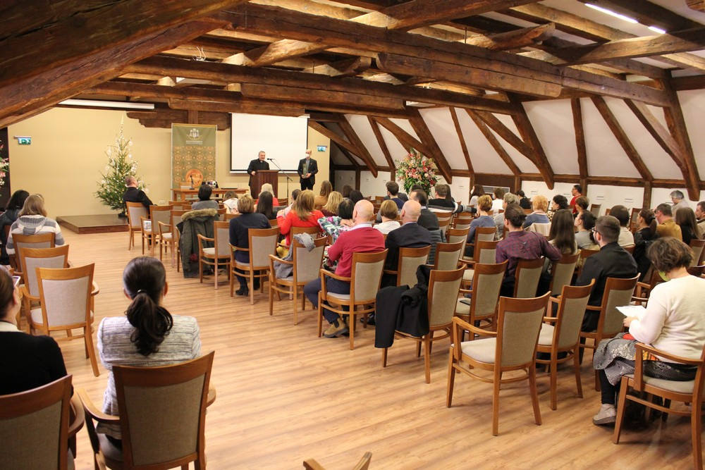 Az elmélkedéseket követően a hivatal dolgozói apró meglepetéssel kedveskedtek a főpásztoruknak, aki jelképes ajándékkal köszönte meg a munkatársak egész éves szolgálatát. A nap ezt követően püspök atya vezetésével szentségimádással folytatódott a székesegyház Corpus Christi-kápolnájában, majd közös ebéddel zárult a Magtár Étteremben.