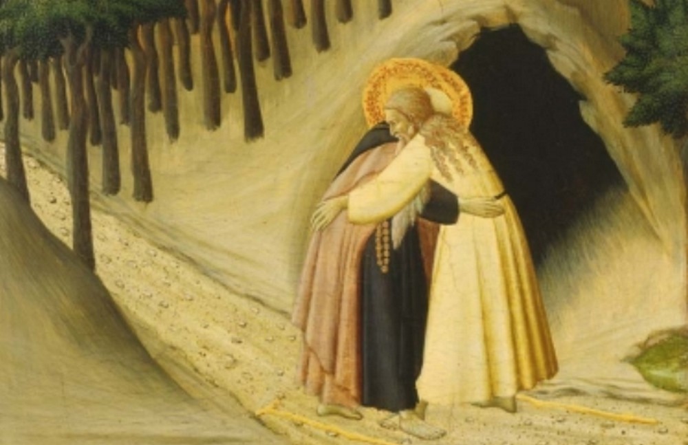 Fotó: Az Osservanza-bazilika mestere: Szent Antal és Szent Pál találkozása (1440 körül)