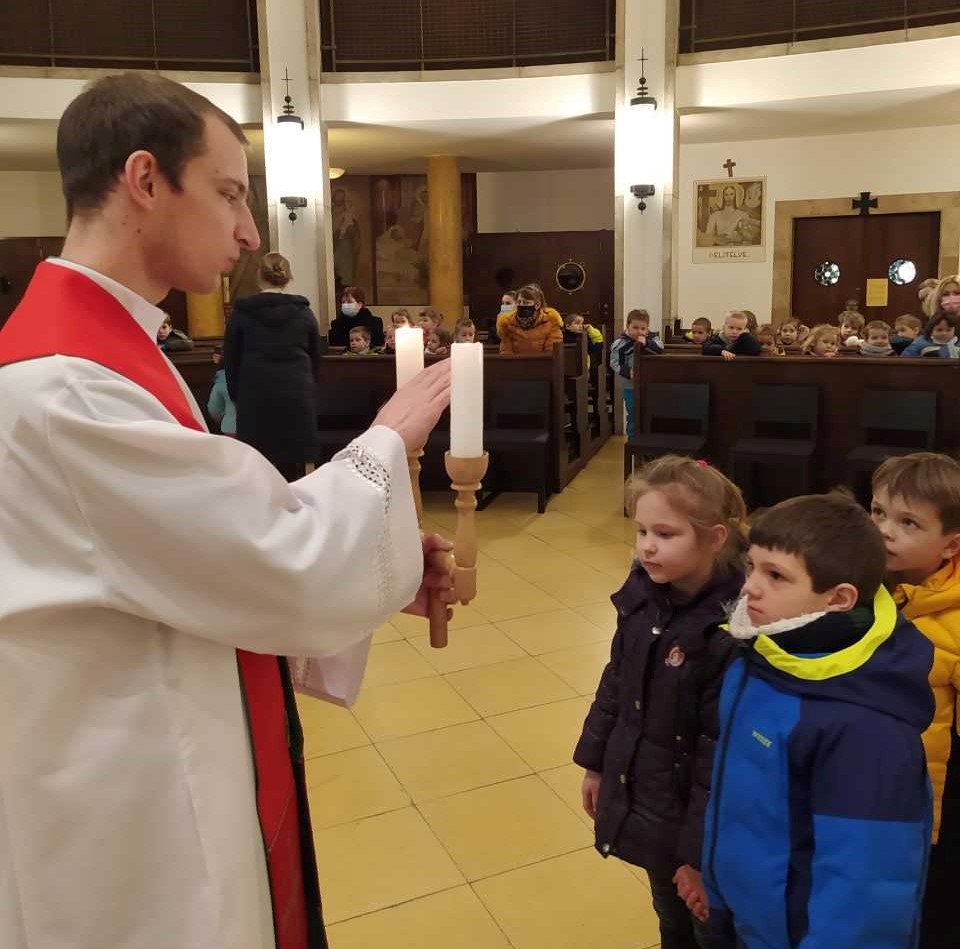 Az óvoda mindennapjaiban már az ünnepet megelőző időszakban középpontba került a fény, a világosság. Kett-módszer szerint készített padlóképes foglalkozások keretében ismerkedtek Lukács evangéliumával, éneket, imát tanultak. Az óvodapedagógusokkal közösen ünneplőbe öltöztették a kis gyertyákat. A templomban óvodalelkészünk, Péter atya a közénk jött világosságról beszélt, majd megáldotta a gyertyákat.