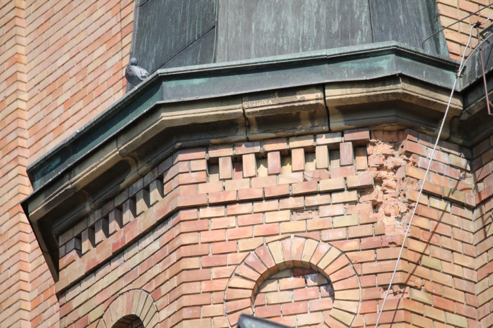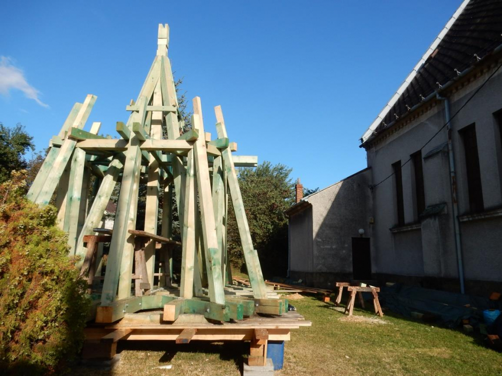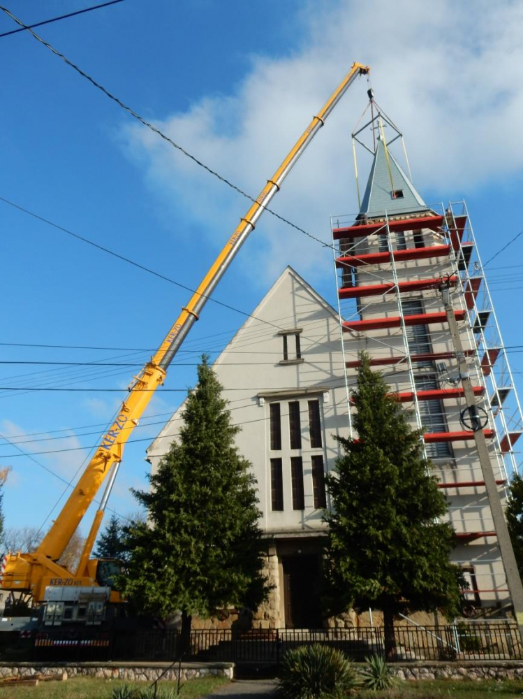 Hatósági előírások miatt, vagyis a hatósági kötelezés miatt vált halaszthatatlanná az épület végleges toronysisakjának felépítése.