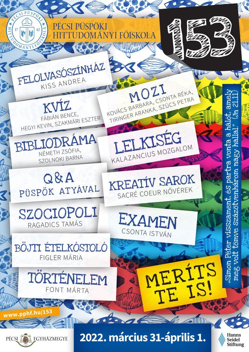 Előadások, közös imádság, beszélgetések, böjti ételek kóstolója és társasjátékok is szerepelnek a Hittudományi Főiskola által életre hívott és 2022. április 1-jén immár második alkalommal megrendezésre kerülő 153 Fesztivál programjai között.