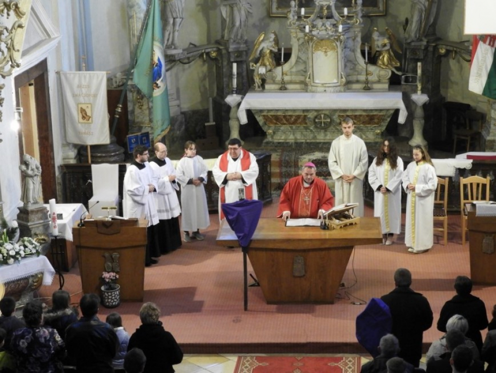 Felföldi László megyéspüspök szentbeszédében Jézus Krisztus kereszthordozásának hozzánk szóló üzenetéről elmélkedett. A főpásztor hangsúlyozta, Krisztus passiójában meg kell találni életünk valóságát, mert mindnyájunk életében van szenvedéstörténet. Jézus kereszthordozása azt tanítja számunkra – magyarázta a főpásztor – hogy életünk szenvedésének története nem szabad, hogy elvegye a szeretetünket. A szeretet segít elviselni a szenvedést, mert a szeretet csodákra képes, de a szenvedés szeretet nélkül elviselhetetlen. Ugyanez fordítva is igaz – emelte ki Felföldi László - a szeretet elfogadott és elviselt szenvedés nélkül üres és élettelen, mert az adja meg valódi gazdagságát és erejét.