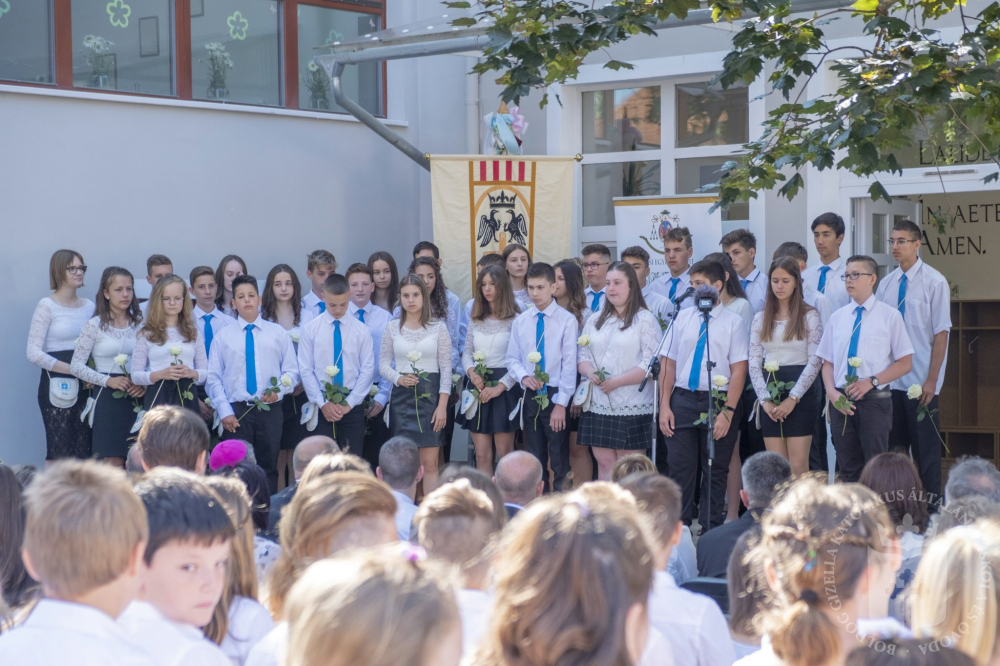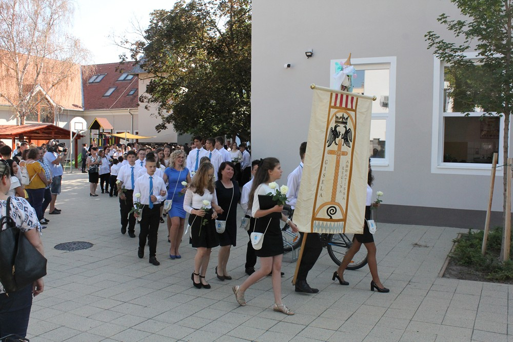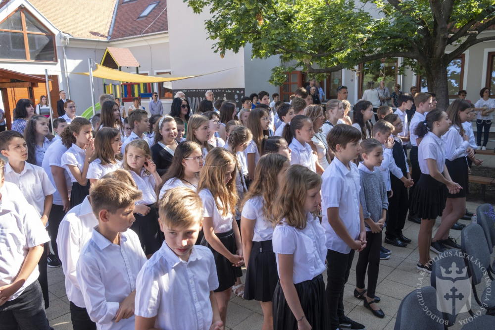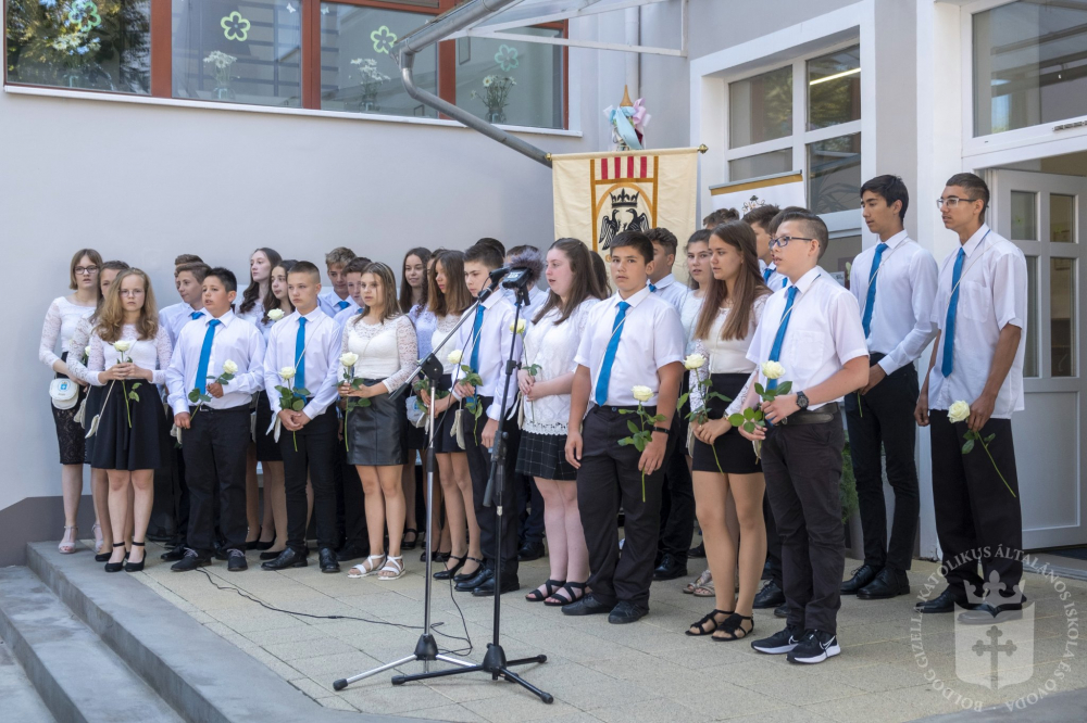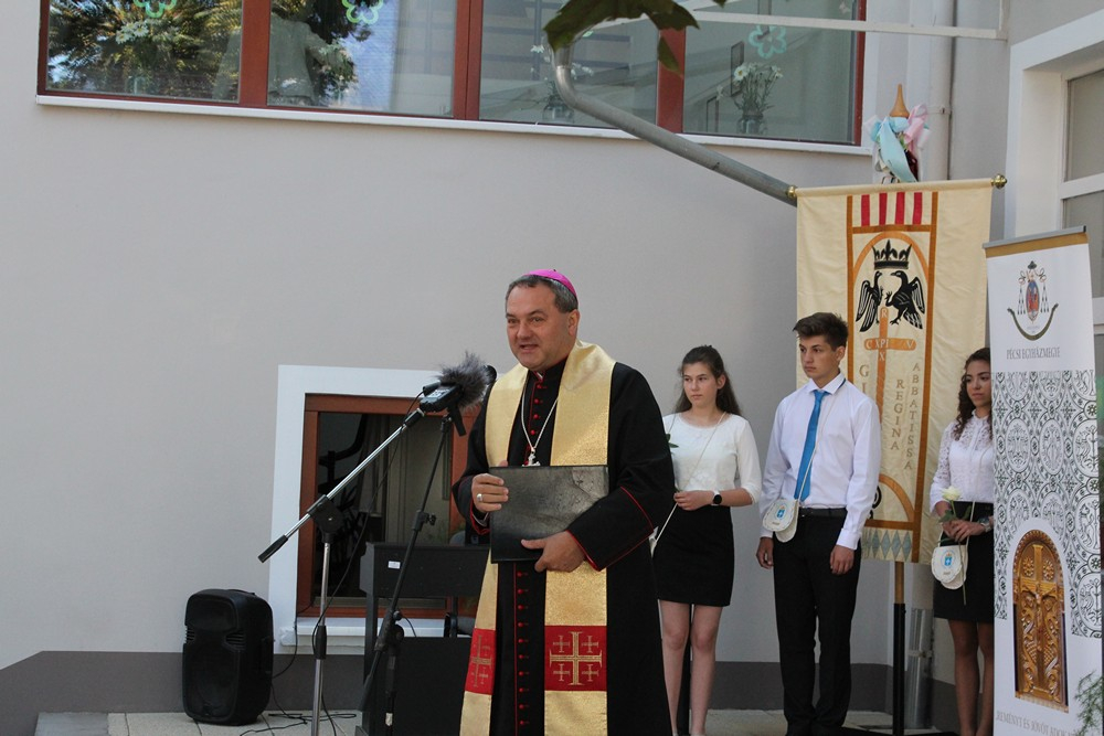 A Boldog Gizella Katolikus Általános Iskola udvarán megtartott ballagási ünnepségen Felföldi László pécsi megyéspüspök köszönetet mondott mindazoknak, akik munkájának és áldozathozatalának köszönhetően megvalósult, hogy ebben a megújult térben a következő nemzedékeknek is fejlődhet és formálódhat az élete és sorsa.
