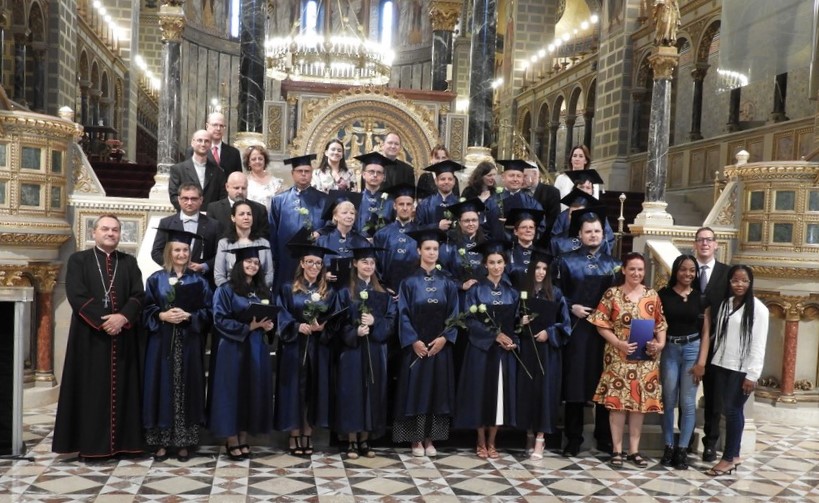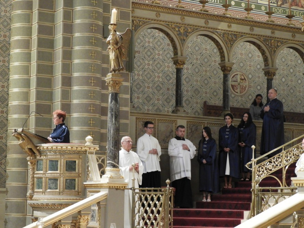 „Rászedtél, Uram! S én hagytam, hogy rászedj" (Jer 20, 7). A Jeremiás próféta könyvéből származó, a hallgatók által magukénak vallott szentírási részt már Szakmári Eszter tolmácsolta. A PPHF-en idén végzett 19 főiskolai hallgató képviseletében köszönetét fejezte ki a közösen megélt jó és rossz dolgokért is, melyek egyaránt segítették fejlődésüket. Mint fogalmazott, a diploma csapatmunka. A hallgatótársak, a barátok, a család türelme, szeretete is kísérte őket útjukon, de a legnagyobb köszönet és hála Istent illeti.