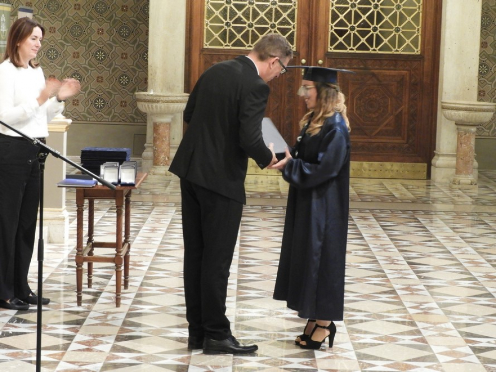 Az ünnepség a diplomások fogadalomtételével, majd a diplomák átadásával zárult.