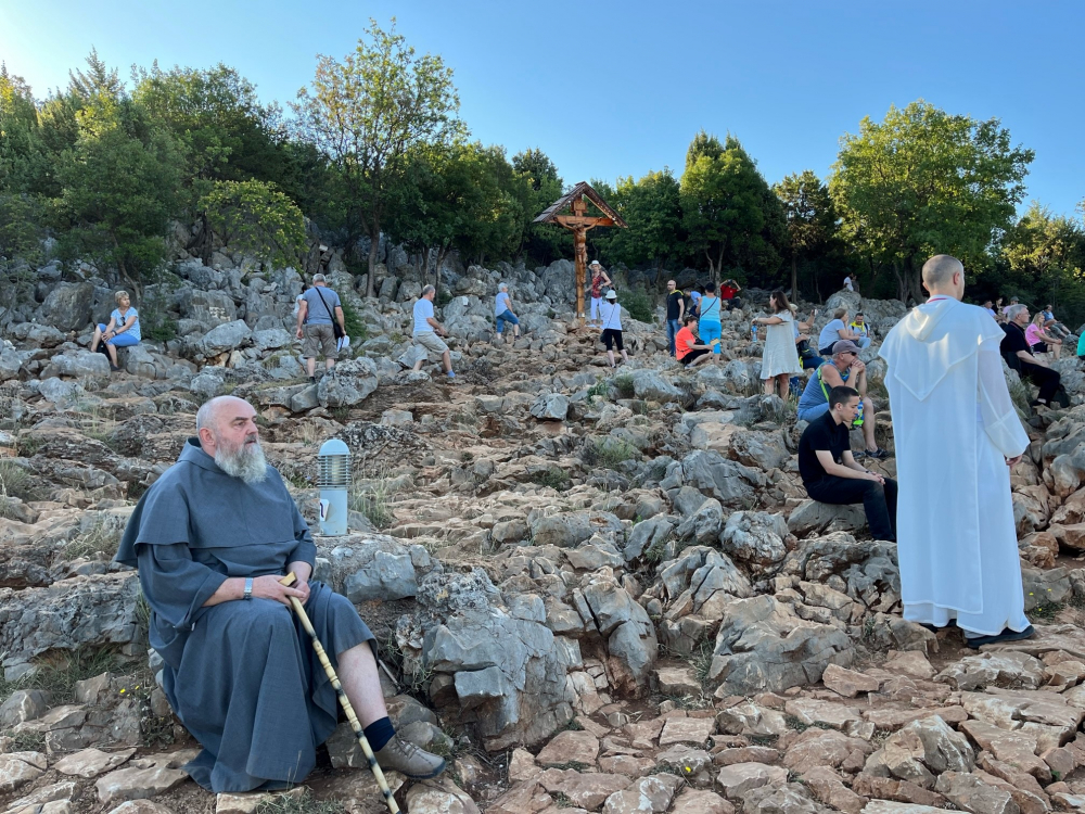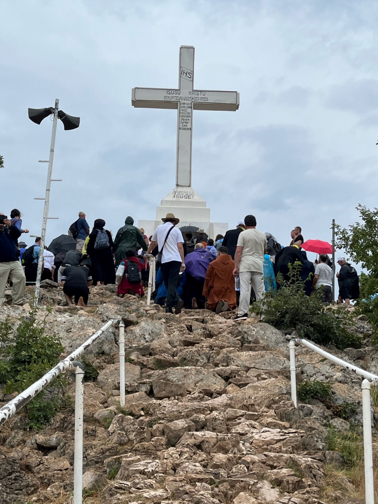 Pénteki napunkat keresztúttal kezdtük a Križevac hegyen. Bár kissé esett az eső, sokan felmentek a hegyre, hogy a meredek sziklás lejtőn felfelé haladva járják végig elmélkedve Krisztus Urunk keresztútját. Néhányan lent maradtak, és a templom mögötti Feltámadt Krisztus-szobor körülötti keresztutat körbejárva végezték el imádságaikat.