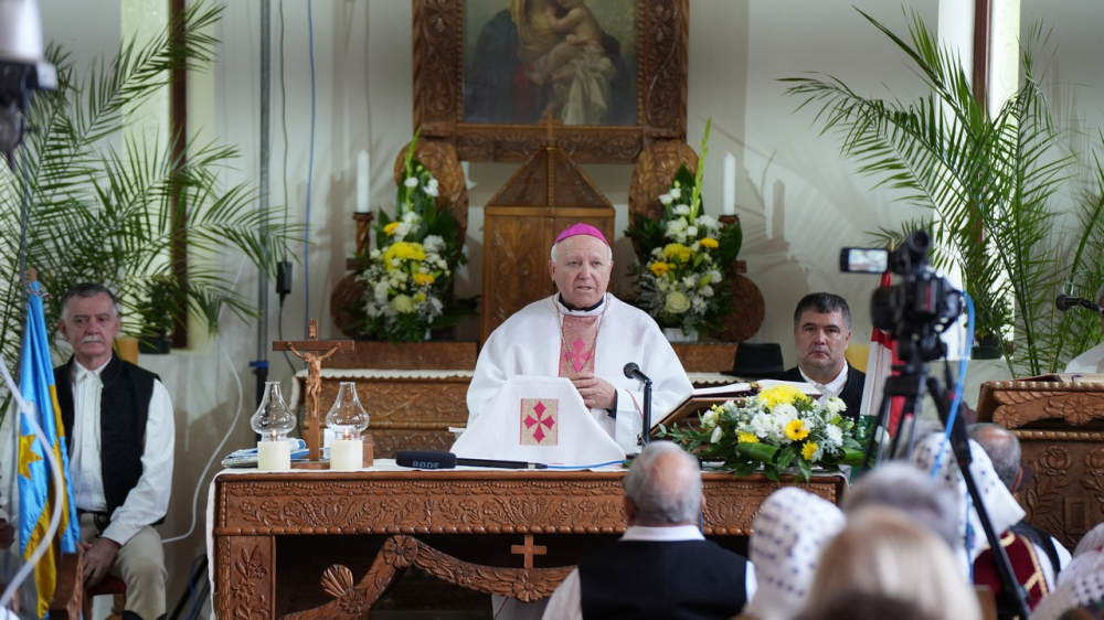 A szónok szentbeszédében a hallgatósághoz fordulva hangsúlyozta: „Őseitek nagy utat tettek meg a Székelyföldről Bukovinán keresztül, míg eljutottak idáig. Sok mindent kellett elviselniük, elviselnetek, de bármi történt, nem szakadtatok el a Jóistentől, bíztatok benne, tiszteltétek a Boldogságos Szűzanyát, közbenjárását kérve megmaradhattatok és élhettek itt. Kövessétek őseitek hitét, akik előttünk jártak a hit fényében, hogy megmaradhassanak Isten nagy szeretetében.”
