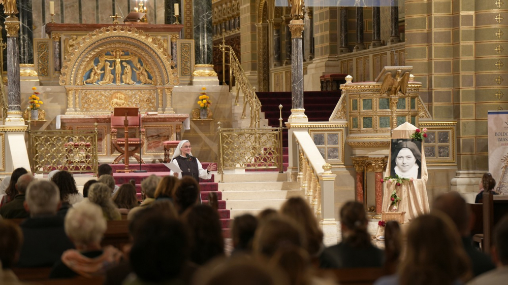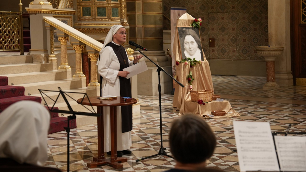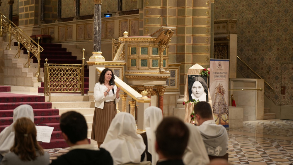 A folytatásban Versegi Beáta nővér, a Közösség pécsi rendházának vezetője az 1873-ban született Kis Szent Teréz életéről, missziós küldetéséről beszélt, melyből megtanulhatjuk, hogy lehet felnőttként is gyermeki bizalommal fordulni Isten felé. Teréznek óriási nagy vágyai voltak, melyekről nehézségek esetén sem mondott le, hanem megtanulta felfedezni, hogy tudja azokat a saját életkörülményei között megélni. Teréz megfogalmazta és kimondta, hogy nagy szent szeretne lenni, kereste, megtalálta és megélte a dicsőségnek az egyetlen módját, amelyik nem mulandó: a szeretet képességét. Kis Szent Teréz azt tanítja számunkra, hogy merjünk nagyot álmodni és utat mutat, hogy a körülményeink hétköznapiságában hogyan lehet a végtelenre irányuló vágyat megvalósítani.