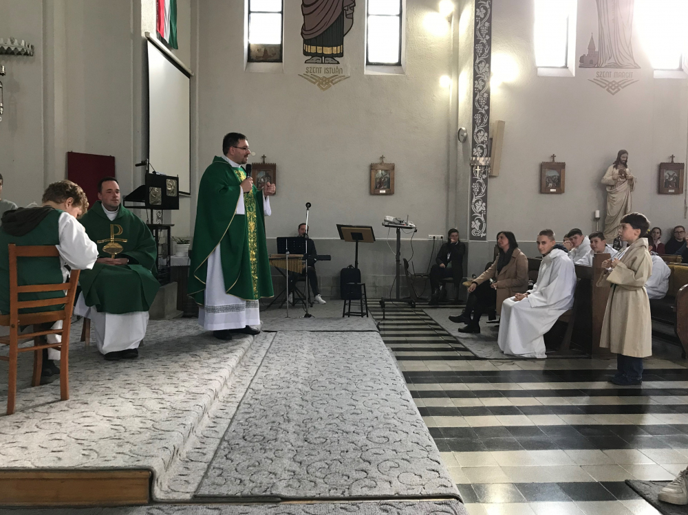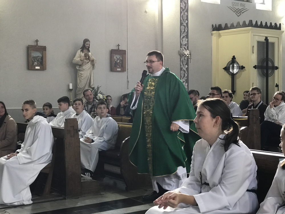 A ministráns napot záró szentmise tanító részében Kovács József referens atya segítségével néhány lelkes ministráns eljátszotta az aznapi evangéliumi szakaszt, melybe még a helyi plébánost is sikerült belevonni.