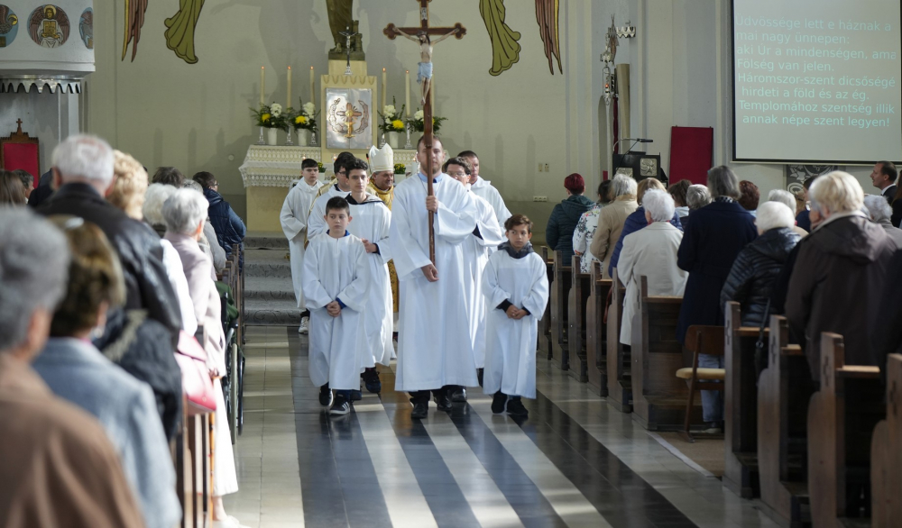 Megújult ez a templom, de a legfontosabb, hogy itt bent, a szívünk is megújuljon. Vigyük magunkkal ennek a képét, nézzük meg Zakeus példáján keresztül, hogy mi akadályoz minket abban, hogy szabadok legyünk, hogy jó hangulat legyen otthon a családban, közösségeinkben. Merjünk elindulni, merjünk kimozdulni, kézbe venni a Bibliát, szolgálatot vállalni, amit kér tőlünk az Isten. Ma üdvösség köszöntött erre a házra, ma kell elinduljunk, hogy szép szeretet és igazi öröm legyen a szívünkben, a saját életünkben és a szeretteink életében – zárta szentbeszédét Felföldi László.