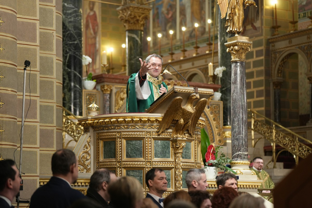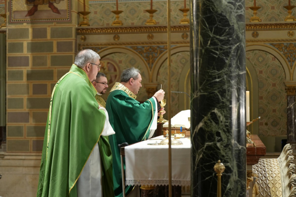 Az ünnepi szentmisén Felföldi László megyéspüspök szentbeszédében külön méltatta az idén Ifjúsági Tüke-díjjal kitüntetett Gráber Kristófot, aki oktatóitól, mesterétől elsajátította a kőműves szakma mesterséget, hogy kiváló munkája által, mesteri módon gazdagodjon a közösség. A főpásztor hangsúlyozta, a mesterséget az iskolában, a mesterek mellett tanuljuk meg, de az életet, a szeretetet, a szolgálatot és a jóságot a család iskolájában sajátítjuk el. Minden szülő, minden édesapa és édesanya az élet mestere, és amikor ebből az iskolából kilépve abbahagyjuk a tanulást, zsákutcába kerülünk. Az életünk végéig szükségünk van mesterre, akitől az életünk vezetését megtanuljuk, akire az életünket rábízzuk.