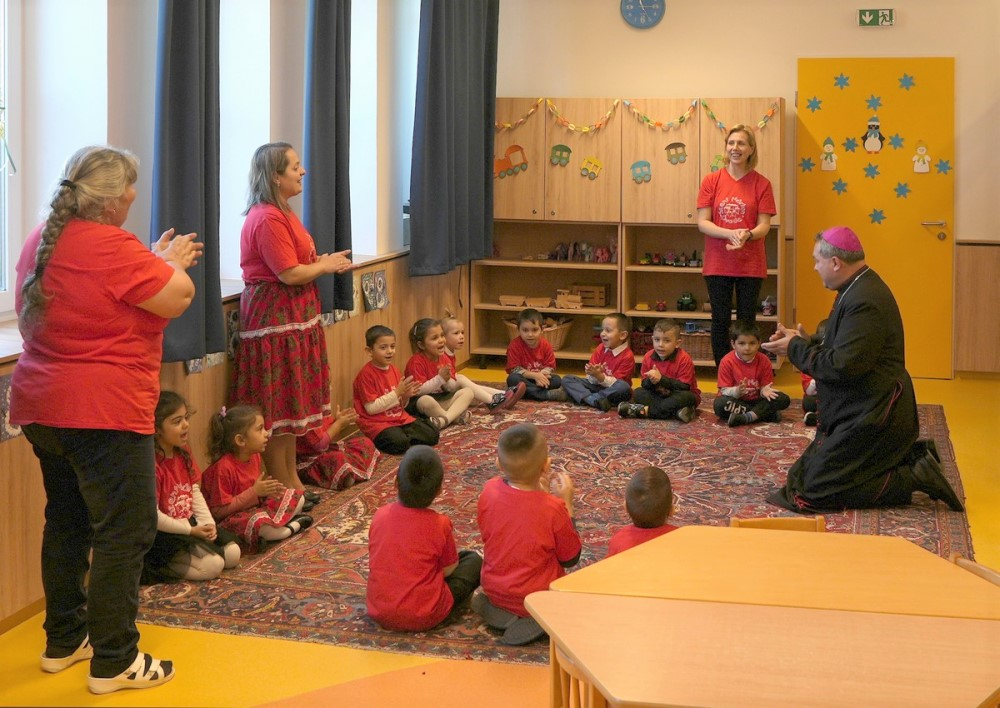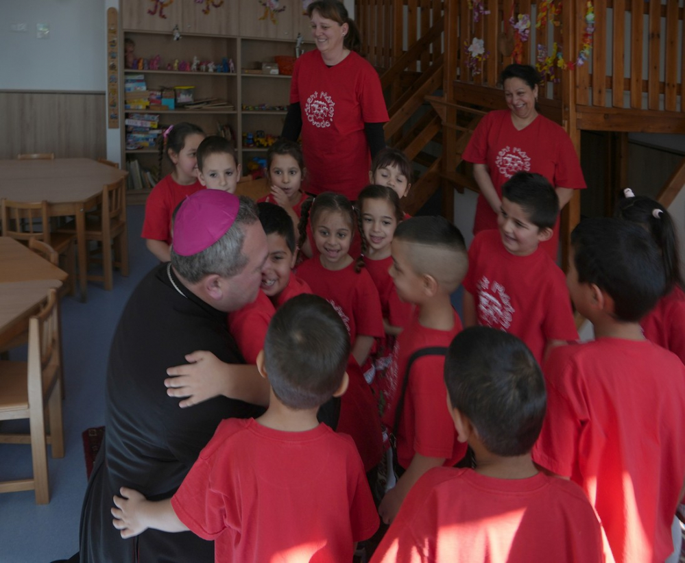 Az épület megáldása során Felföldi László mind a négy óvodai csoportot felkereste, és a termek szentelt vízzel való meghintése előtt játékos, barátságos perceket töltött a gyermekekkel és óvópedagógusaikkal. Az ünnepséget szeretetvendégség zárta.