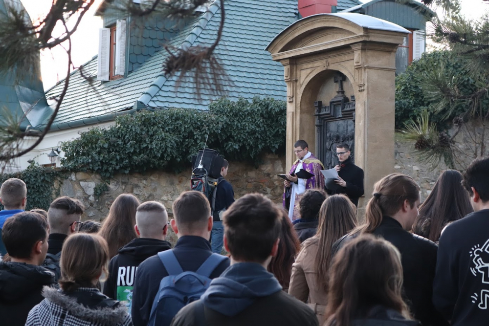 Mintegy ötven középiskolás és egyetemista fiatal gyűlt össze, hogy gitáros énekekkel, imádkozva járják végig azt a tizennégy állomást, melyre az evangéliumi elbeszélések alapján a hagyomány Jézus Krisztus szenvedésének történetét felosztotta. A hívő keresztény ember életében a nagyböjti bűnbánati időszaknak és a húsvét előkészítésének hangsúlyos eleme Krisztus elítélése, kereszthordozása, keresztre feszítése és sziklasírba helyezése eseményeinek felelevenítése. Az ifjúsági fáklyás keresztutat szervező Berecz Tibor iskolalelkész fontosnak tartja, hogy a fiatalokat bevonja a keresztúti ájtatosság végzésének hagyományába.