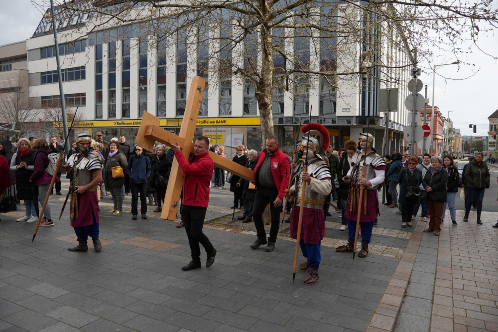 Az életnagyságú feszület utcákon történő hordozásban, majd pedig a templom szentélyében való megtartásában katolikus iskolák növendékei, plébániai és lelkiségi közösségek, a Pécsi Egyházmegye német és a horvát referatúrájának tagjai, a Katolikus Karitász, a Magyar Máltai Szeretetszolgálat, cserkészek valamint egyházmegyés papok és a megyéspüspök is részt vállalt. A keresztút zárásában Felföldi László püspök megköszönte mindazok szolgálatát, akik részt vállaltak a városi keresztút megvalósításában.