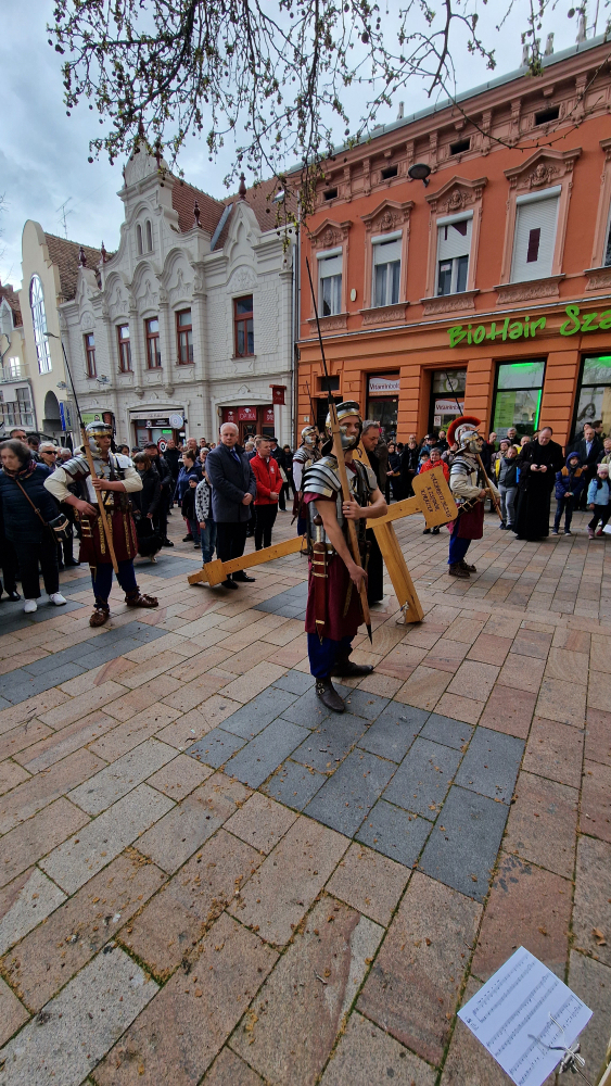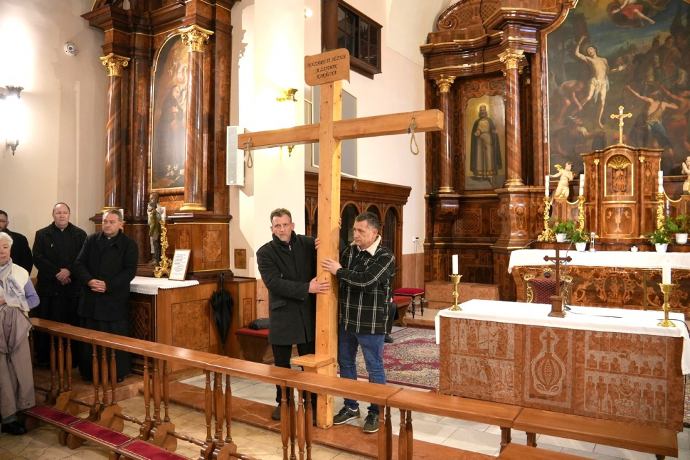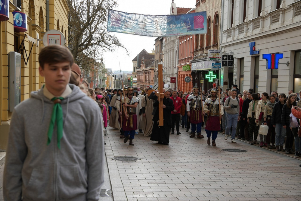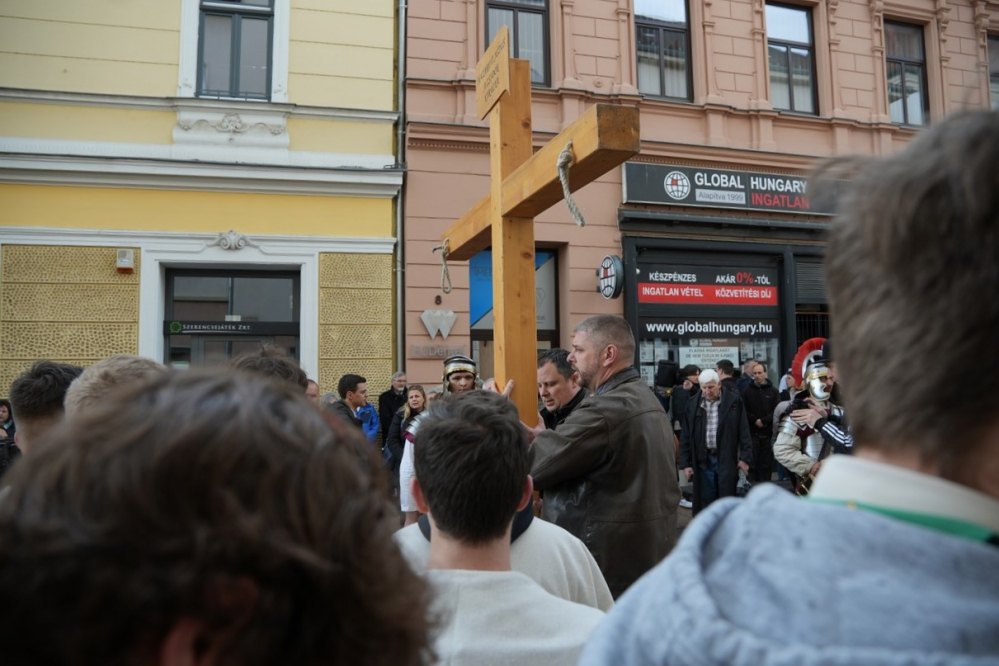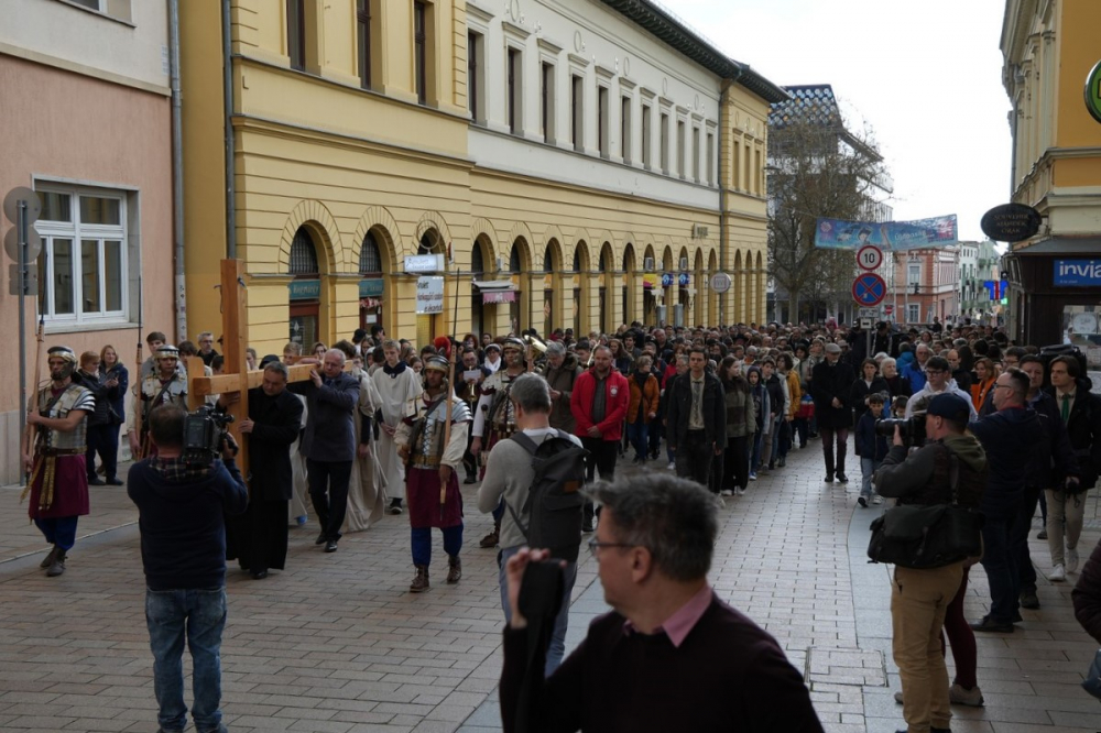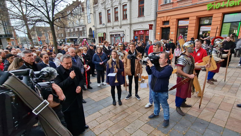 Felföldi László pécsi megyéspüspök a Kossuth téren, indulás előtt úgy fogalmazott, hogy minden ember életének legnagyobb feladata, hogy szenvedéstörténetét elhelyezze a saját vállán. Az életünk derűje és öröme az, hogyan visszük a keresztünket, nem az, hogy van-e, mert mindenkinek van - mutatott rá a püspök.