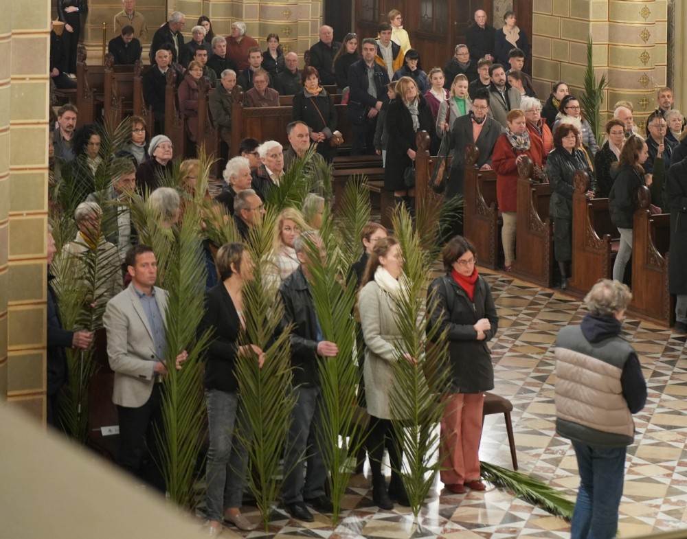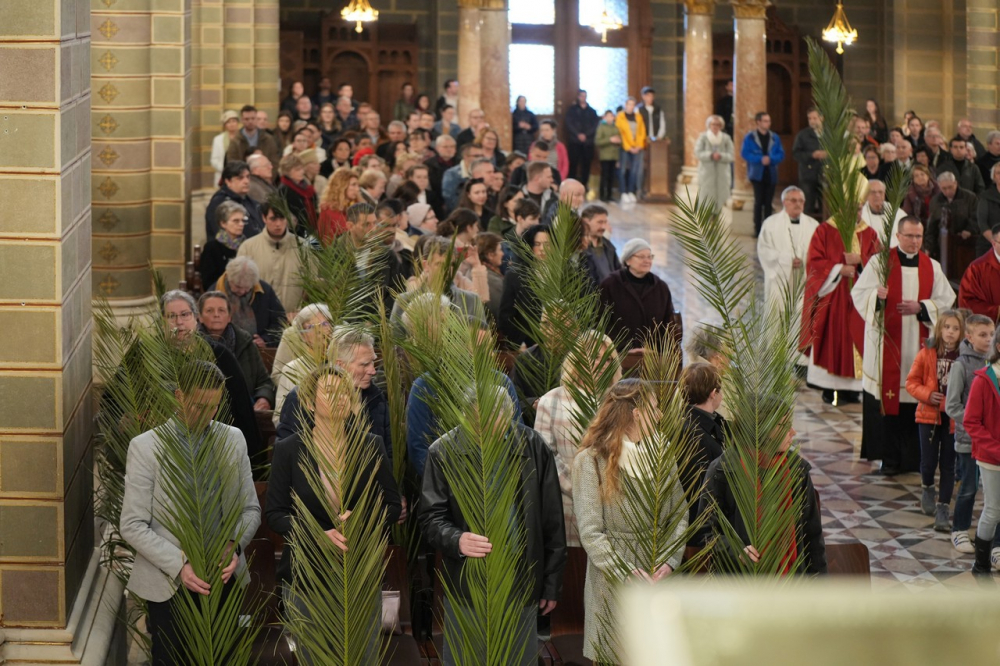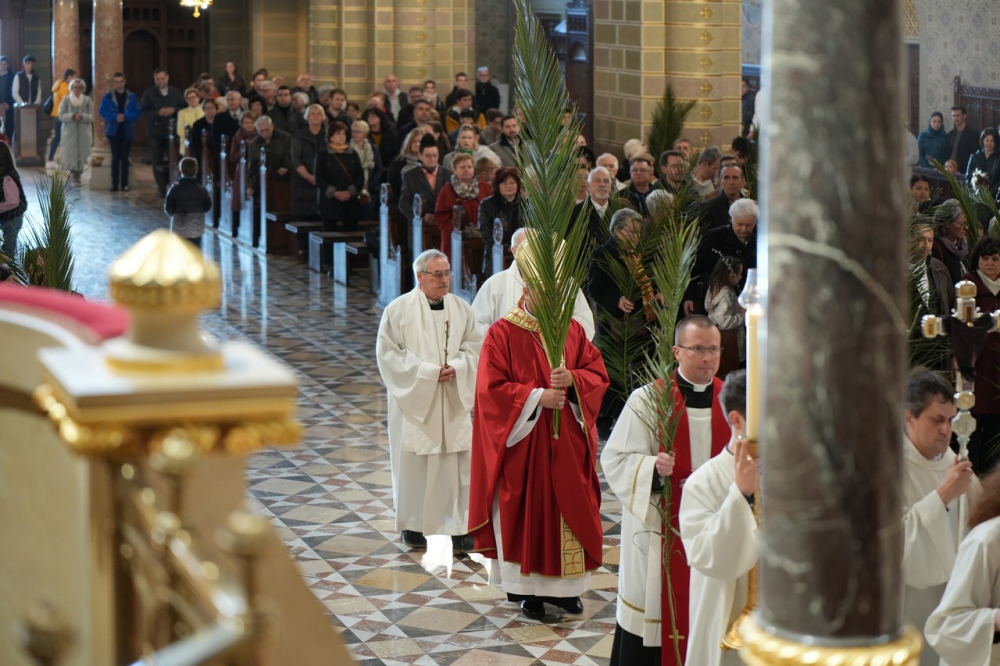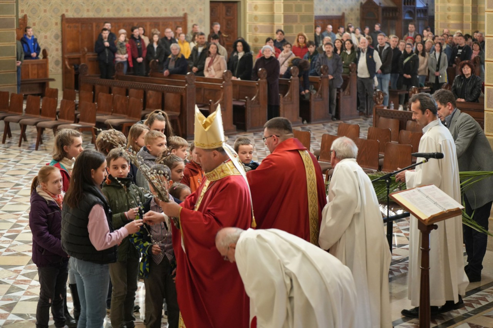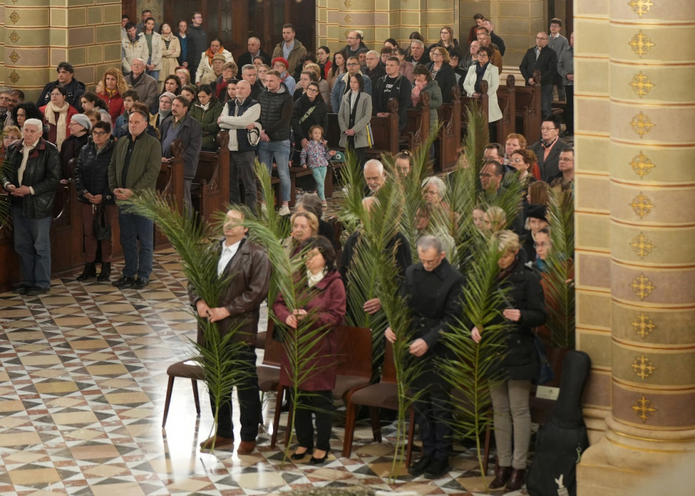 Barka- és pálmaágak megáldásával kezdődött az ünnepi főpásztori szentmise virágvasárnap este a pécsi bazilikában. A Jézus jeruzsálemi bevonulásának emléket állító liturgiát Felföldi László megyéspüspök celebrálta. A szentmisében elhangzott a passió.