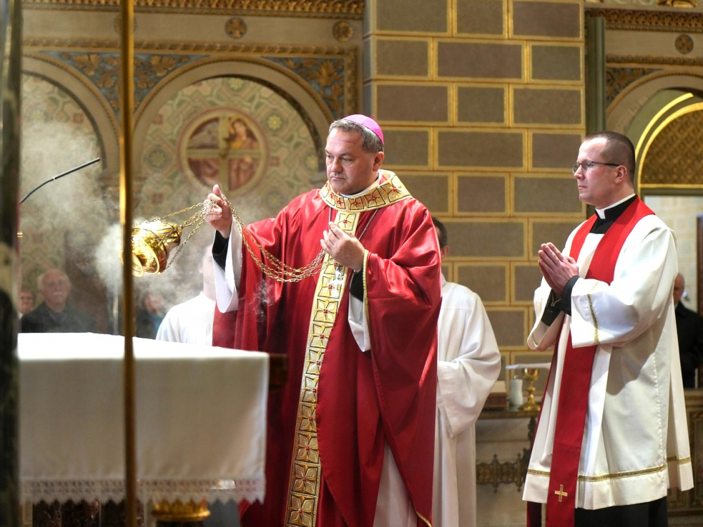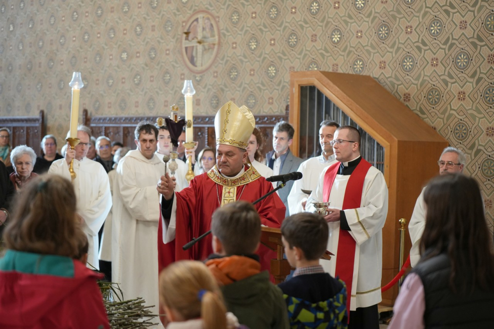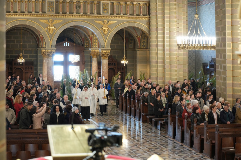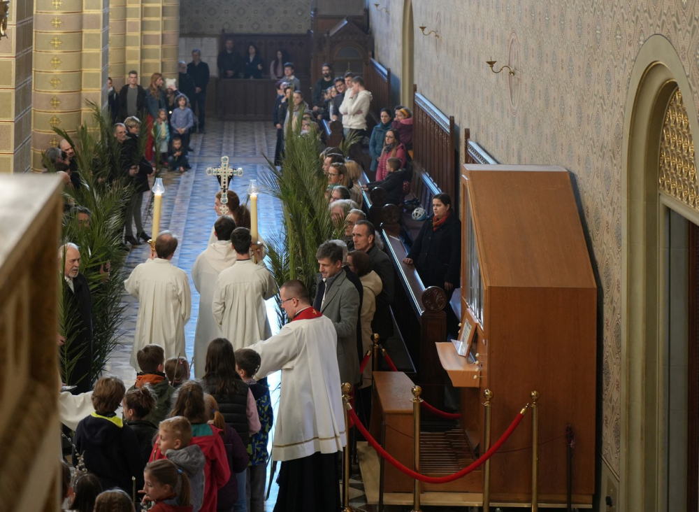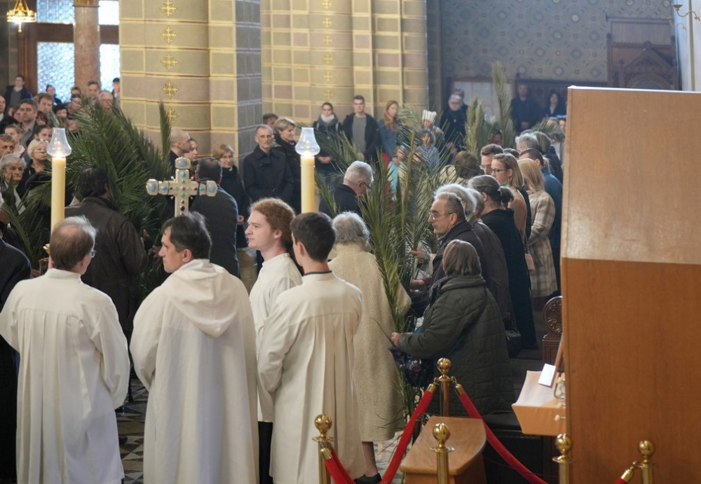 Barka- és pálmaágak megáldásával kezdődött az ünnepi főpásztori szentmise virágvasárnap este a pécsi bazilikában. A Jézus jeruzsálemi bevonulásának emléket állító liturgiát Felföldi László megyéspüspök celebrálta. A szentmisében elhangzott a passió.