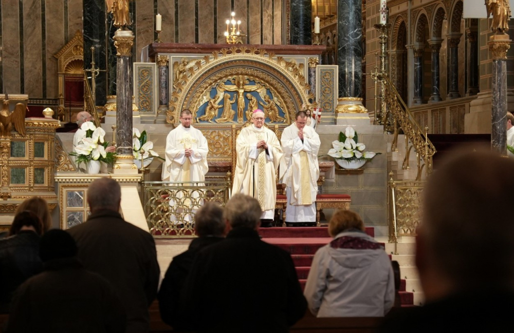 Április 12-én, dr. Cserháti József néhai pécsi püspök 1994-ben bekövetkezett halála évfordulóján Mayer Mihály nyugalmazott püspök szentmisén emlékezett meg az egyházmegye korábbi főpásztorairól a székesegyházban. A liturgián koncelebrált Máger Róbert püspöki irodaigazgató és Berecz Tibor káplán.