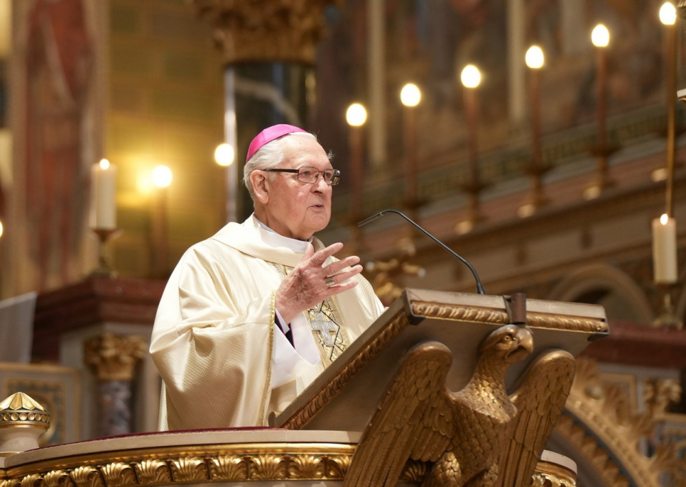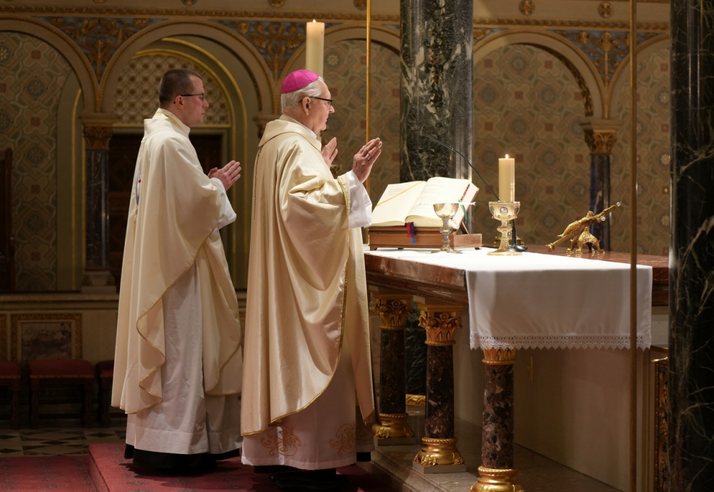 Szentbeszédében Mayer Mihály kiemelte, az Egyház tanításában, amelyben részt veszünk, nekünk is folyamatosan változni, alakulni kell, de közben sohasem a világ elvárásaihoz kell alakulni és a világ felé kell tekinteni, hanem az egyetlen viszonyítási pontra: Jézus Krisztusra. Mint amikor valaki iránytűt vesz a kezébe. A keresztény embernek a szívében van az iránytű, mely mindennapokban is mindig Jézusra mutat, aki felé akarjuk az életünket igazítani. Ezt tette minden püspök a maga idejében, a különböző generációkban, a társadalom és a világ elvárásai és viszonyai közepette.