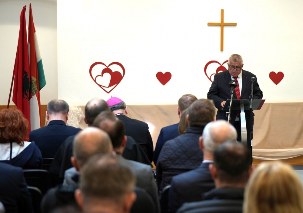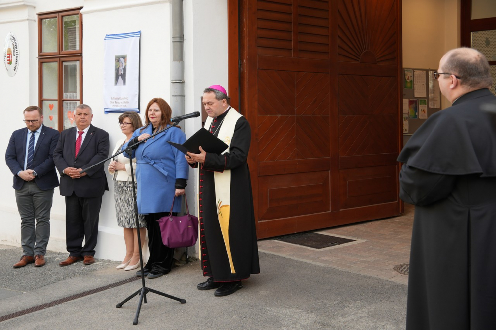 Az ünnepi beszédek folytatásában Felföldi László, az óvodát fenntartó Pécsi Egyházmegye püspöke kifejezet köszönetét és örömét, hogy az emléktábla a Kalkuttai Szent Teréz Óvodát gazdagíthatja. Mint mondta, az emléktábla nem csupán egy kődarab, hanem emléket állít a múltnak, melynek emlékeire épül a jelenünk.