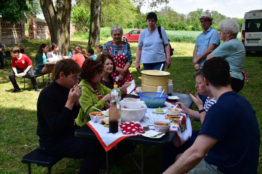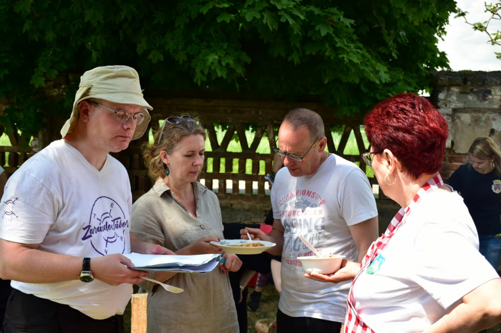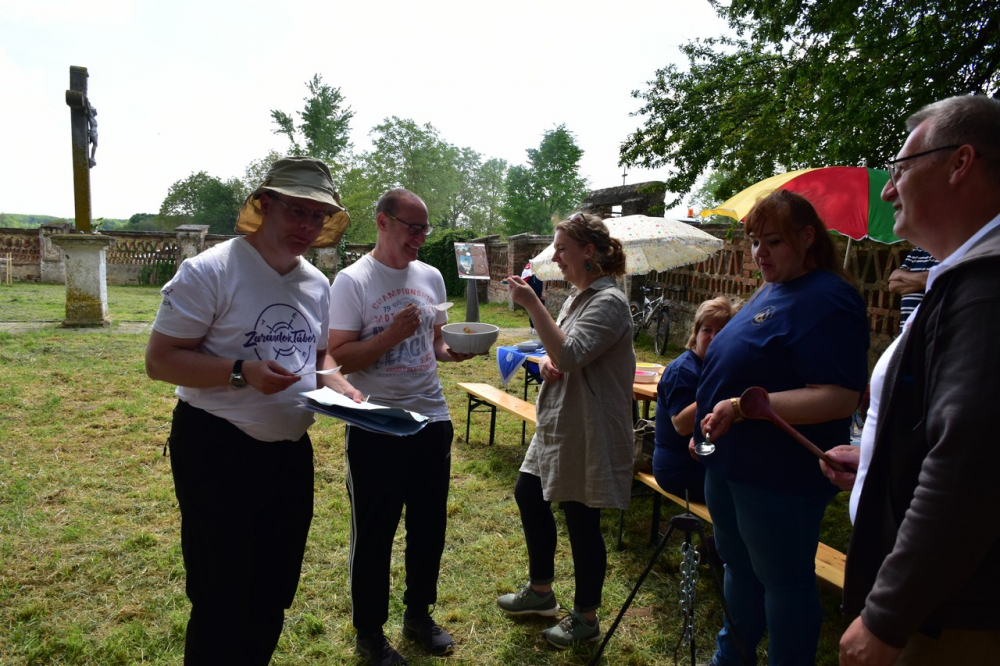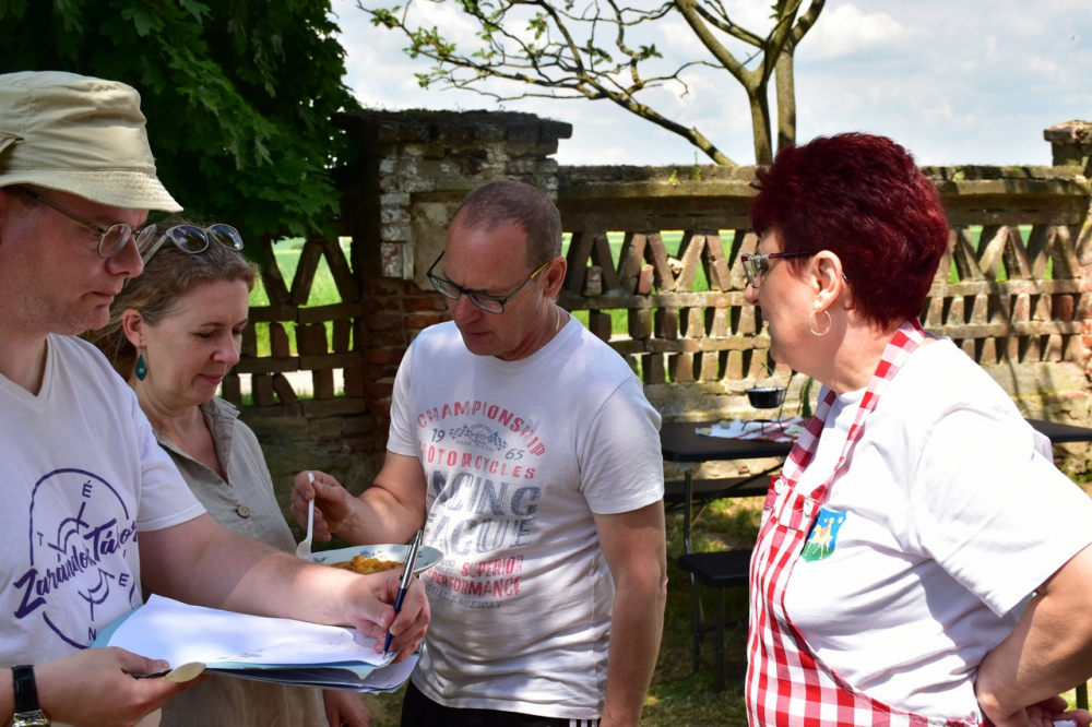 A túrák érkezési pontja a turbéki kegytemplom volt. A templomkertben a túrázókat csapattagjaik várták, akik frissen készített egytál ételeikkel nemcsak a megfáradt túrázókat örvendeztették meg, hanem a háromtagú zsűrit is, akik a finom ételeket hosszas kóstolgatás és tanakodás után értékelték és díjazták.