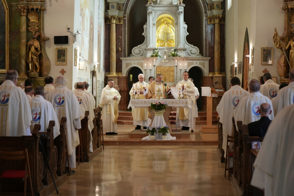 Felföldi László pécsi megyéspüspök meghívására papi találkozóra érkeztek Máriagyűdre a Pécsi Egyházmegye lelkipásztorai május 23-án. A szentmisén dr. Kvanduk Frigyes, az egyházmegye általános helynöke mondott szentbeszédet.