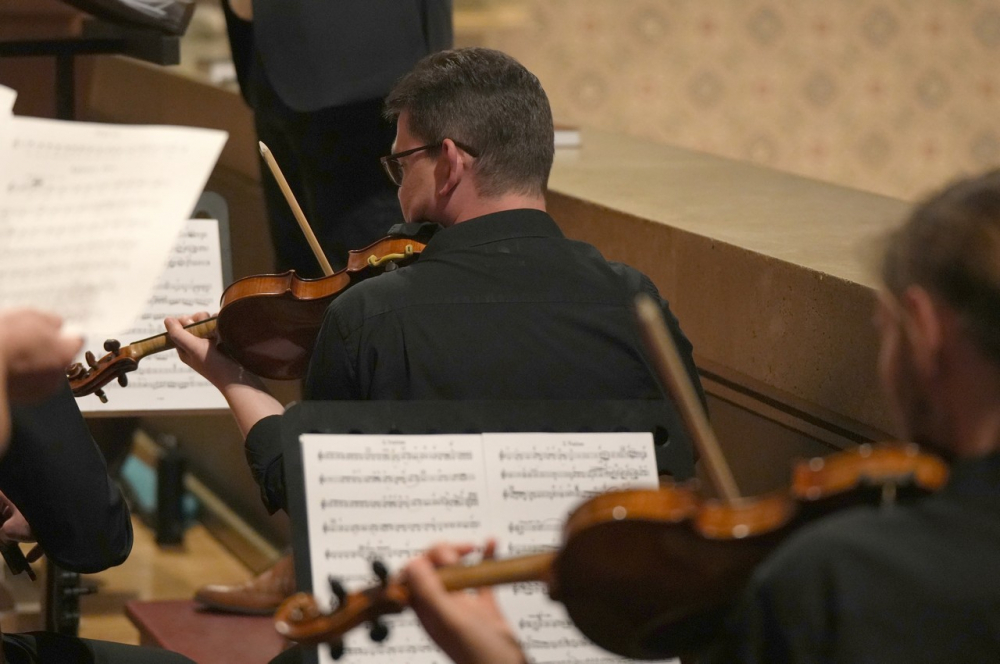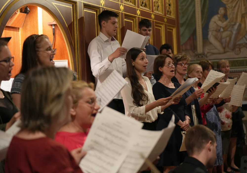 Az ünnepi szentmise zenei szolgálatát a székesegyház Mozart Kórusa és Zenekara adta Stauróczky Balázs karnagy vezényletével. Felcsendültek Haydn F-dúr miséjének részletei, valamint Kovács Szilárd Ferenc, a székesegyház orgonaművész-zeneigazgatója által feldolgozott Győzelemről énekeljen kezdetű himnusz-feldolgozás.