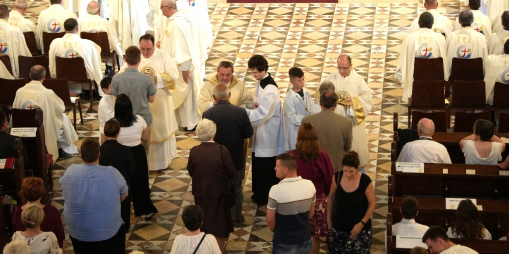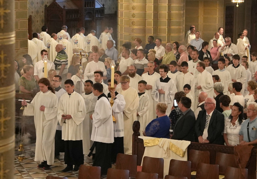 A pécsi székesegyházban celebrált ünnepi szentmisén részt vett Mayer Mihály nyugalmazott püspök, az egyházmegye papjai, papnövendékei, a szentelendők szemináriumi elöljárói, hozzátartozóik, barátaik és a hívek közössége.