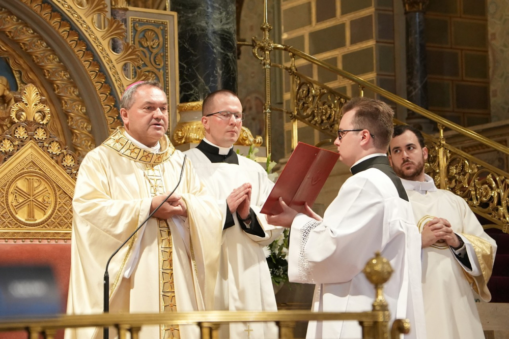 Szentbeszédében a főpásztor az egyházmegye papjaihoz is intézett intelmet. Kiemelte, a szentelendők életében a hivatáshoz az alapokat a család és a szeminárium lerakta, a felépítés azonban a papi közösség kezében van.